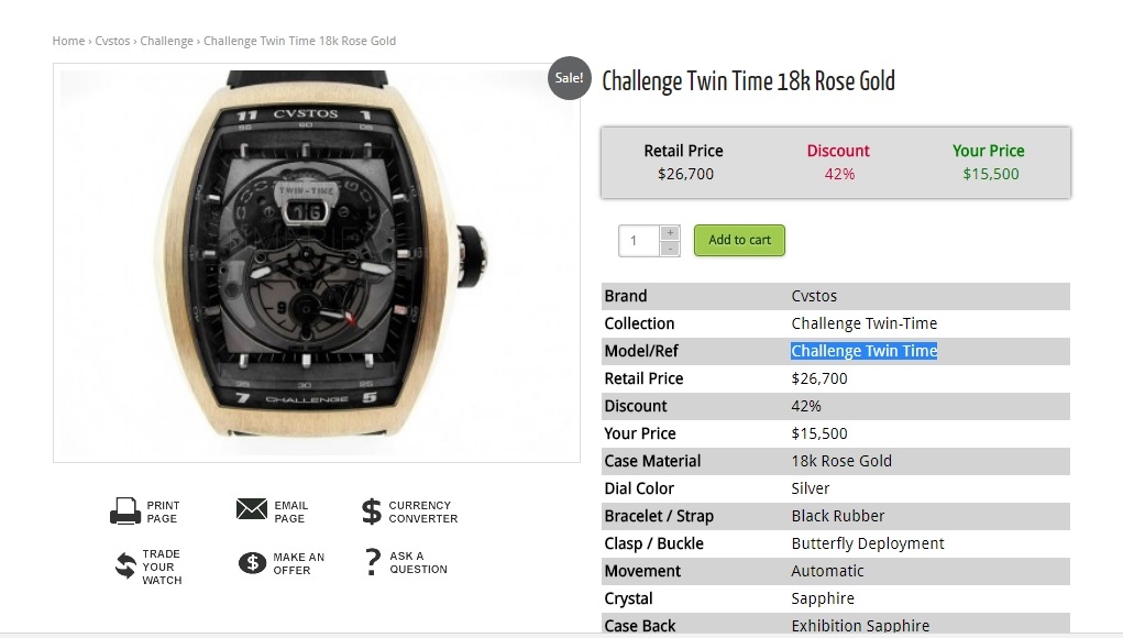 Nằm trong một trong ba bộ sưu tập hàng đầu, đã từng đưa tên tuổi của Cvstos ra tầm Thế Giới, chiếc đồng hồ Cvstos Challenge Twin Time mà Gia Bảo Luxury đang sở hữu như một thông điệp thách thức mọi giới hạn về vẻ đẹp cũng như độ phức tạp của đồng hồ.