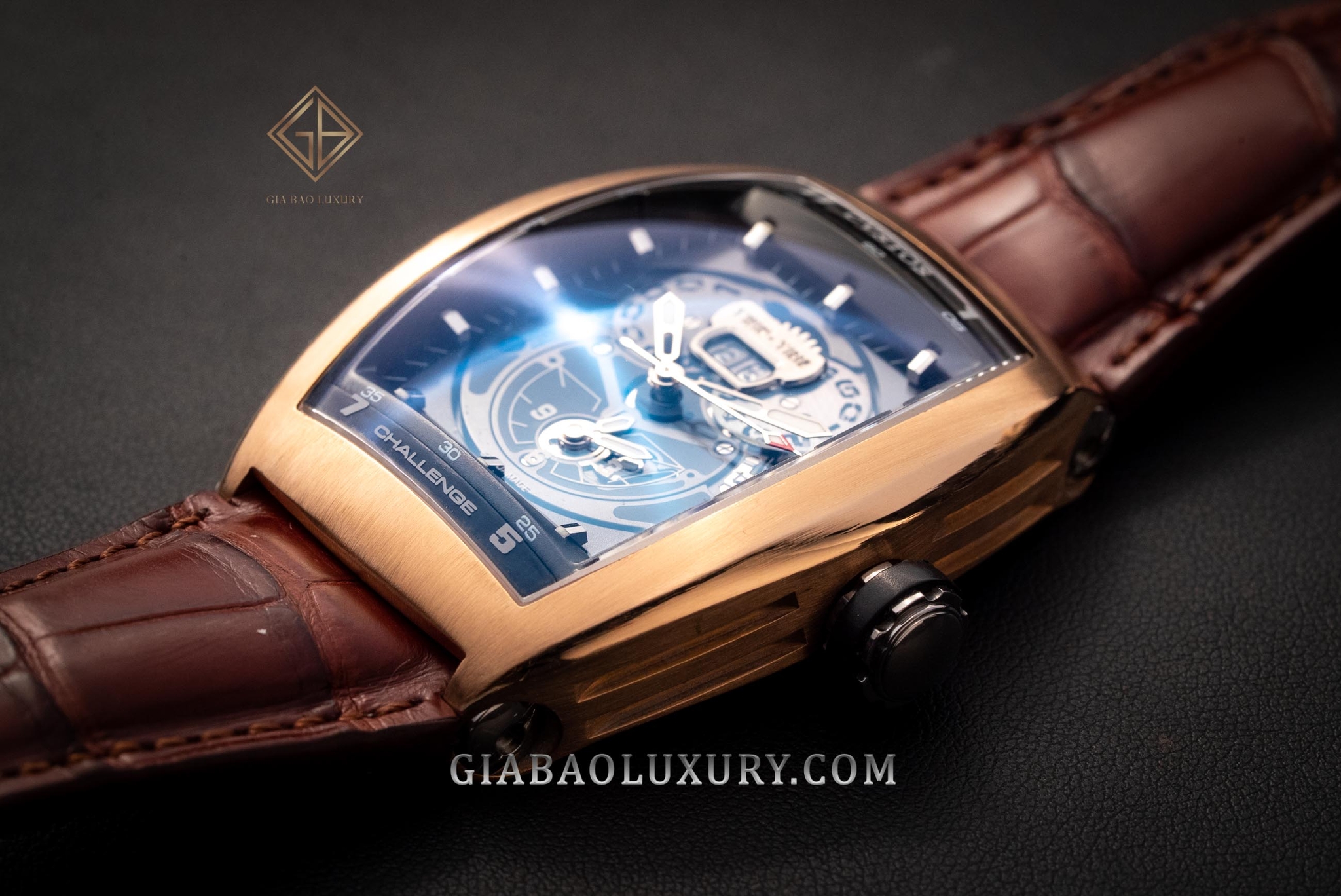 Là một mẫu đồng hồ dành cho nam giới có dáng cổ tay đậm đà một chút, mẫu đồng hồ CVSTOS Challenge Twin-Time CTT RGR tại Gia Bảo Luxury có kích thước là 53mm x 41mm. Đặc biệt có kích thước lớn, bộ vỏ bằng vàng hồng lại càng khiến mẫu đồng hồ trở nên nặng tay. Bắt kịp với xu hướng yêu thích những chiếc đồng hồ thể thao và bụi bặm như hiện nay, thương hiệu CVSTOS quyết định tung ra các cỗ máy đếm thời gian sở hữu bộ vỏ tonneau, dáng thùng khỏe khoắn. Từng cạnh đồng hồ đã được hãng tiến hành chải xước dọc kéo dài từ đầu càng nối dây bên trên tới càng nối dây phía dưới trong khi những phần cạnh bên lại được hoàn thiện bằng phương pháp đánh bóng.