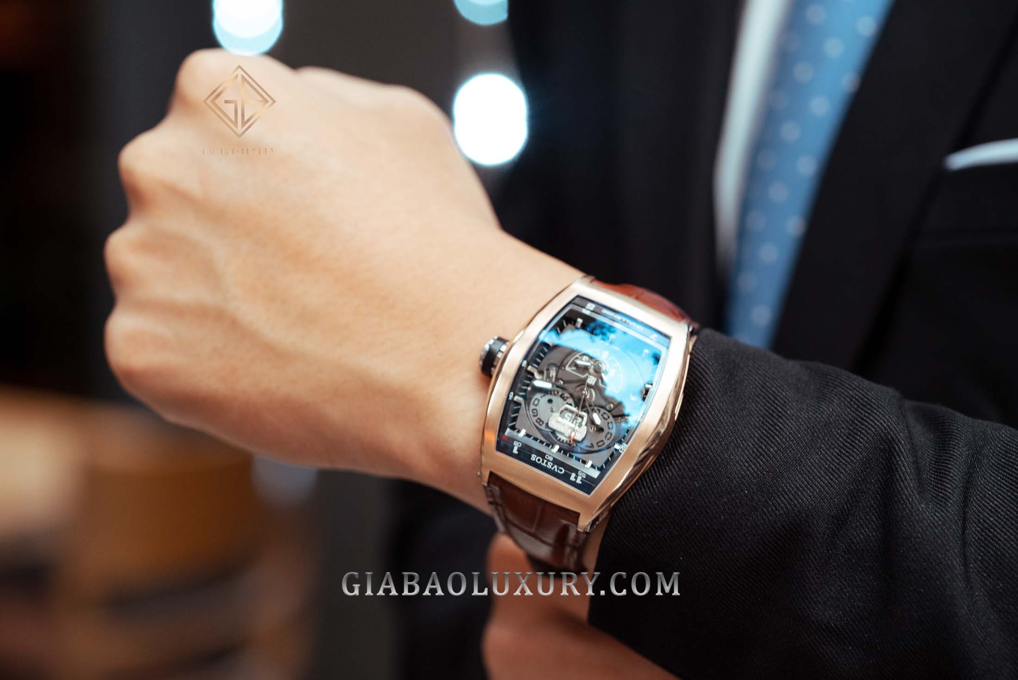 CVSTOS Challenge Twin-Time CTT RGR là mẫu đồng hồ mới có mặt tại Gia Bảo Luxury. CVSTOS thực sự là một thương hiệu không quá nổi tiếng trên thế giới, bởi hãng tập trung tung ra dòng đồng hồ có kích thước lớn hơn hẳn chu vi cổ tay nam giới. Và bởi việc sở hữu kích thước có phần “ngoại cỡ” như vậy, không phải ai cũng đeo được đồng hồ do CVSTOS sản xuất.