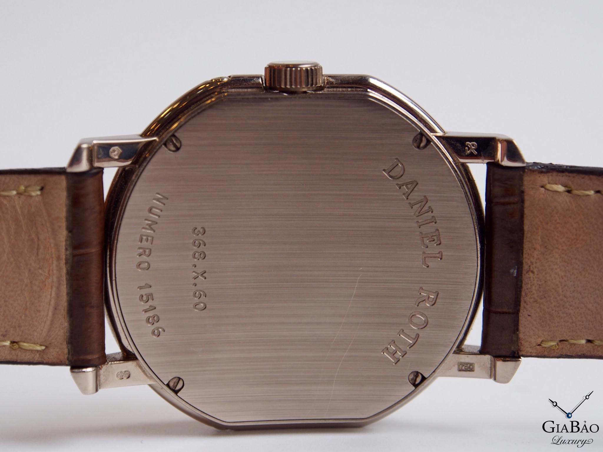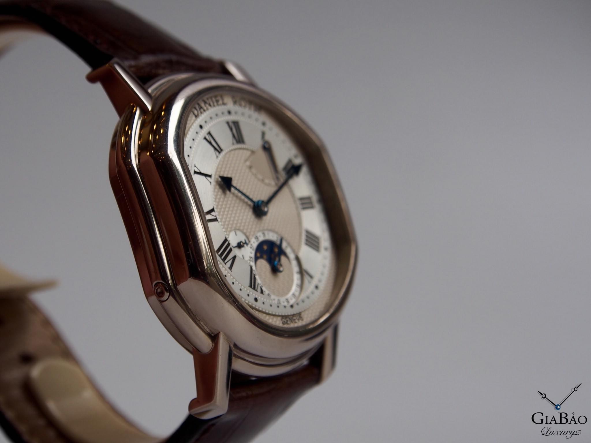 Daniel Roth là là một công ty sản xuất đồng hồ có trụ sở tại Vallée de Joux, Thụy Sĩ, năm 1989. Năm 2000, công ty được mua lại bởi Bulgari Group. Những mẫu đồng hồ Daniel Roth kể cả trước lẫn sau khi sát nhập đều có dáng “Ellipsocurvex” (là sự kết hợp của dáng vỏ chữ nhật và những đường cong mềm mại) đặc trưng của thương hiệu này. Đây là một thiết kế mà chúng ta ít thấy tại các thương hiệu nổi tiếng khác. Hôm nay, Gia Bảo Luxury xin giới thiệu với quý khách một chiếc đồng hồ Daniel Roth vàng trắng lịch tuần trăng với thiết kế đặc trưng.