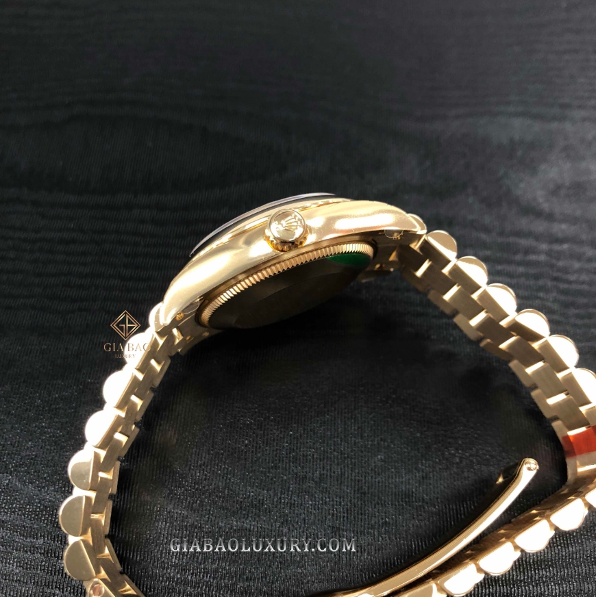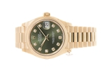 Đồng Hồ Datejust 31 278248 Mặt Số Xanh Oliu Nạm Kim Cương Dây Đeo President tạo dấu ấn với người hâm mộ bởi mặt số xanh Oliu cùng bộ cọc số bằng vàng vàng nạm kim cương. Vành bezel dạng tròn được cắt gọt vô cùng tinh tế mang đến một sản phẩm thời trang có tính thẩm mỹ cao.
