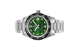 Đồng hồ đeo tay thương hiệu Nivada Grenchen, dòng sản phẩm Antarctic Diver, Ref num 32053A, mặt số xanh lá chải tia Sunray, size 38mm, máy tự động, vỏ và dây đồng hồ bằng thép không gỉ, mới 100%