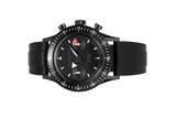 Đồng hồ đeo tay thương hiệu Nivada Grenchen, dòng sản phẩm Chronomaster, Ref no: 85015A, mặt số màu đen, size 38mm, máy tự động, vỏ đồng hồ bằng thép không gỉ phủ đen và dây cao su, mới 100%