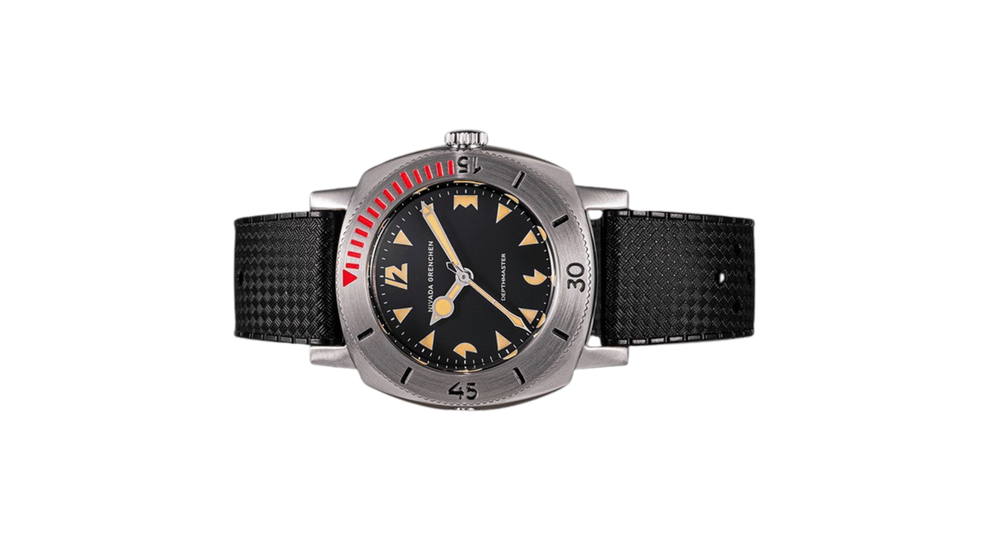 Giới thiệu Đồng hồ đeo tay thương hiệu Nivada Grenchen, dòng sản phẩm Depthmaster, Ref number: 14105A, mặt số đen nhạt, size 39mm, máy tự động, vỏ thép không gỉ 316, dây da bò, mới 100%
