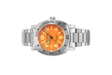 Đồng hồ đeo tay thương hiệu Nivada Grenchen, dòng sản phẩm Depthmaster, Ref number: 14127A, mặt số màu cam, size 39mm, máy tự động, vỏ và dây đồng hồ bằng thép không gỉ 316, mới 100%
