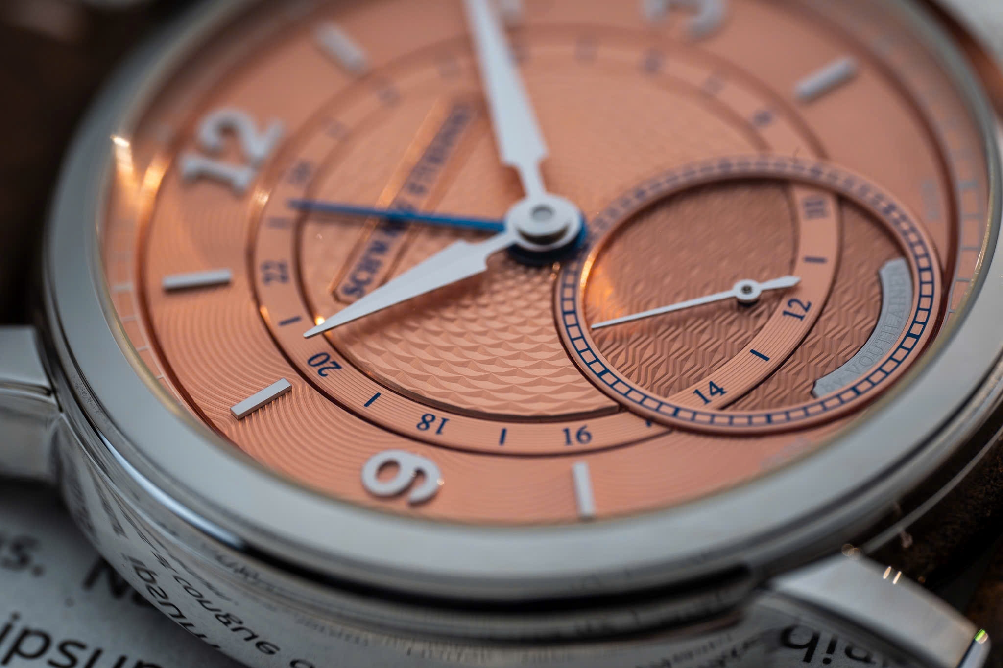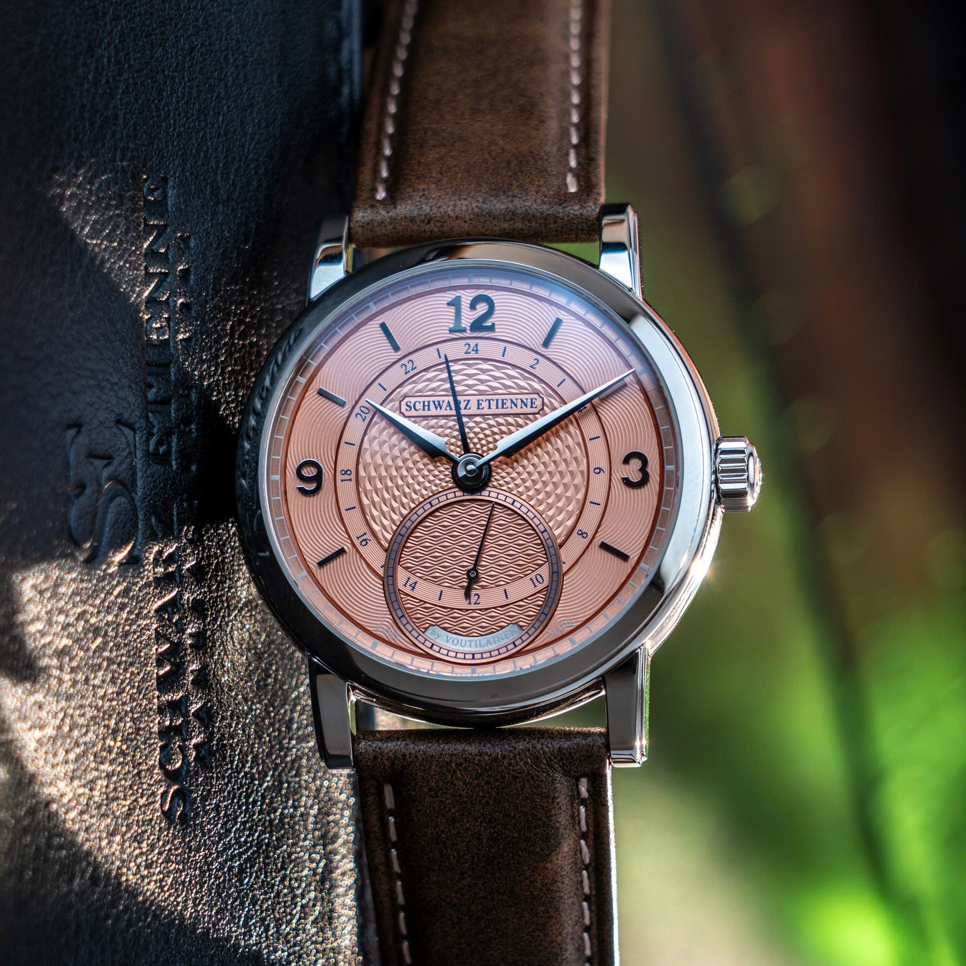Nhìn chung, Schwarz Etienne x Kari Voutilainen là kết quả của cuộc gặp gỡ giữa hai “thế giới”: một bên giàu kinh nghiệm về lắp ráp bộ máy với tính hữu dụng cao, một bên lừng danh với tay nghề thủ công guilloché đỉnh cao. Màu Terracotta “salmon” cùng các họa tiết guilloché phong phú trên mặt số, cộng với chức năng GMT trung tâm, tạo nên bức tranh “tân cổ giao duyên.” Cỗ máy ASE 200.00 (hoặc 120.00) bảo đảm độ ổn định với tần số 3 Hz và thời lượng cót 86 giờ, vừa đủ cho nhu cầu sử dụng thường nhật. Dây da “aged” nâu, cùng khóa gập khắc logo, làm tăng vẻ cổ điển, mang chút nét hoài niệm nhưng vẫn rất tiện dụng.