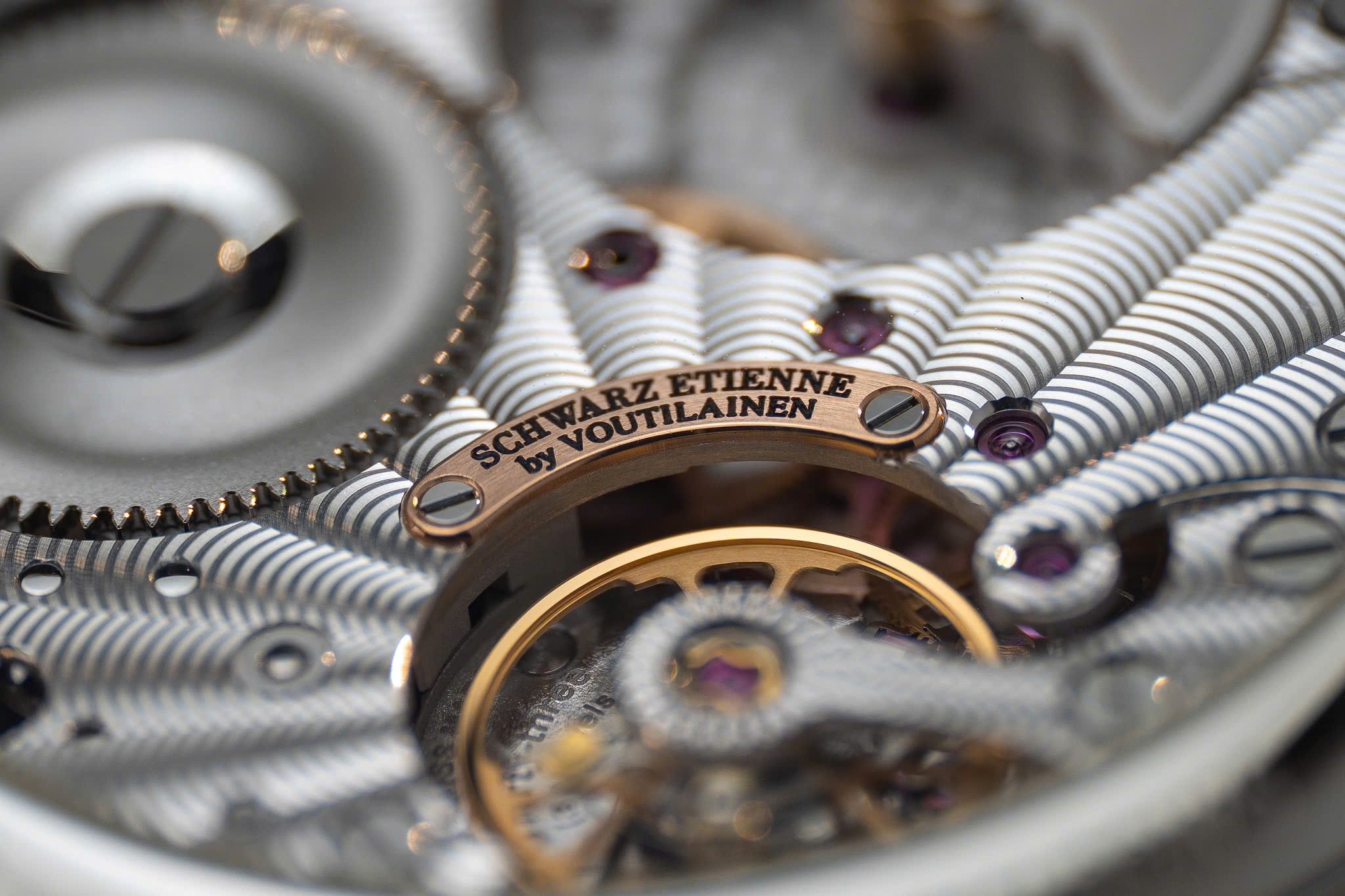 ROMA SYNERGY được trang bị máy tự động (mechanical automatic) mã tham chiếu ASE 200.00 (một số thông tin khác nhắc đến cả ASE 120.00 – cần xác minh thêm). Bộ máy này do chính Schwarz Etienne phát triển, kết hợp tay nghề hoàn thiện đặc biệt từ Kari Voutilainen. Cấu hình bao gồm: