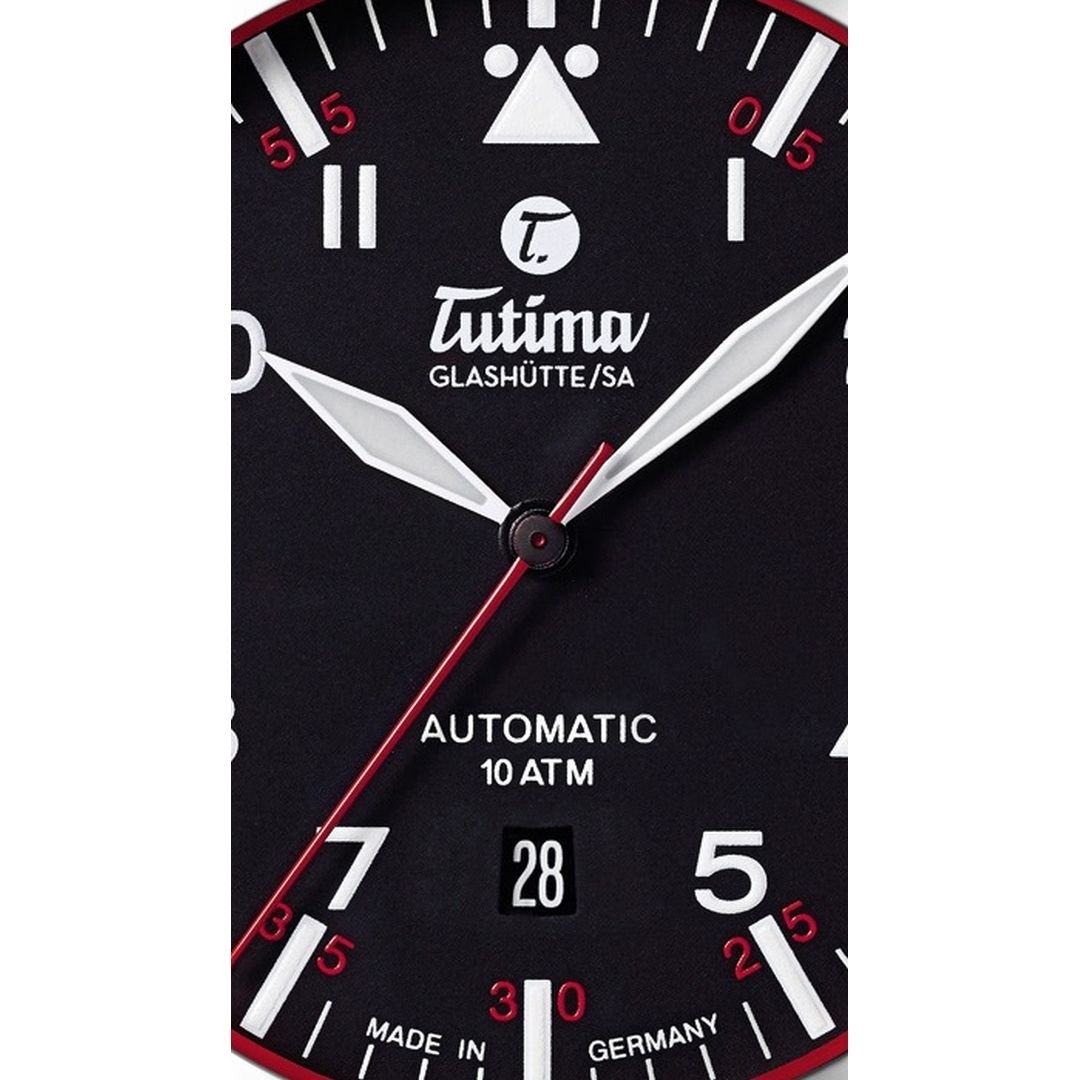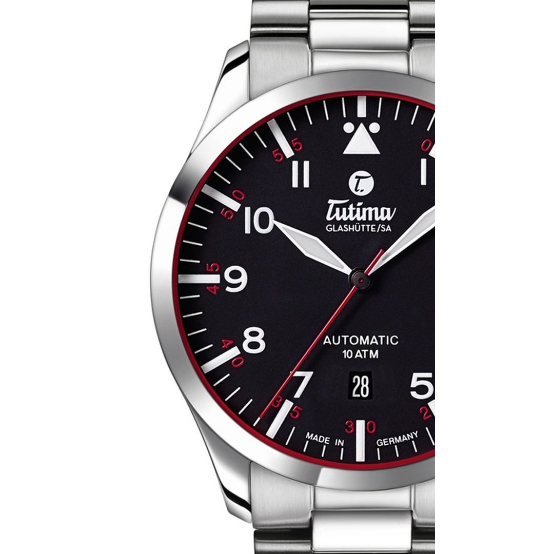 Đồng hồ đeo tay thương hiệu Tutima, dòng sản phẩm Flieger Automatic, Ref no: 6105-02, mặt số nhung đen, size 41mm, máy tự động, vỏ và dây đồng hồ bằng thép không gỉ, hàng mới 100%