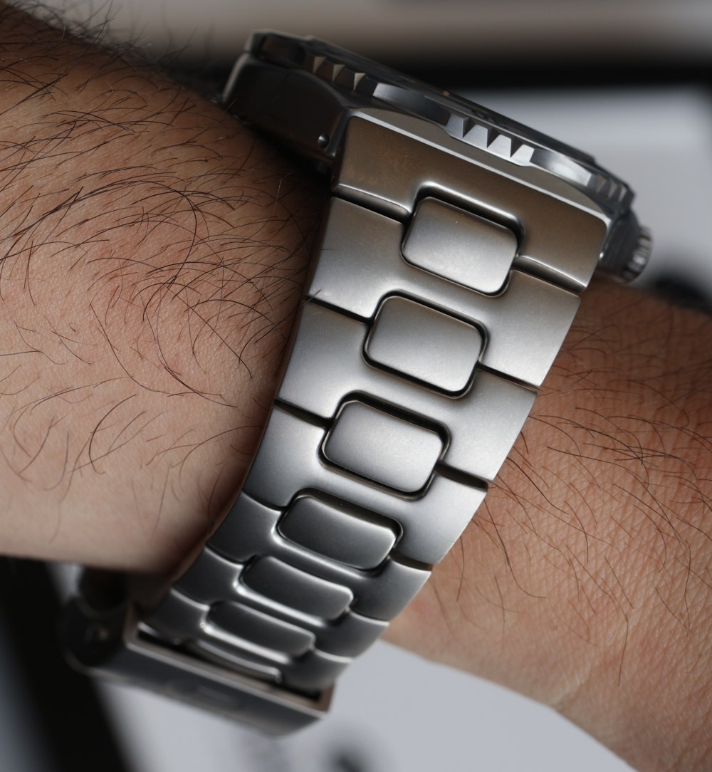 Xét về tính thẩm mỹ và hoàn cảnh sử dụng, M2 Seven Seas (Ref: 6151-02) đáp ứng tốt cả hai khía cạnh. Với vẻ ngoài cứng cáp, kích thước vỏ lớn, màu titanium xám cùng mặt số đen nhung, đồng hồ này dễ dàng “đồng hành” với bạn trong những chuyến trekking, dã ngoại, hay các hoạt động thể thao. Tuy vậy, khi kết hợp cùng áo sơ mi hay vest, chiếc đồng hồ vẫn toát lên phong cách hiện đại, thể hiện chất Đức chính xác và bền bỉ. Titanium nhẹ khiến bạn hầu như quên đi việc đang đeo một chiếc đồng hồ 44mm, từ đó cảm giác đeo cả ngày không còn là trở ngại.