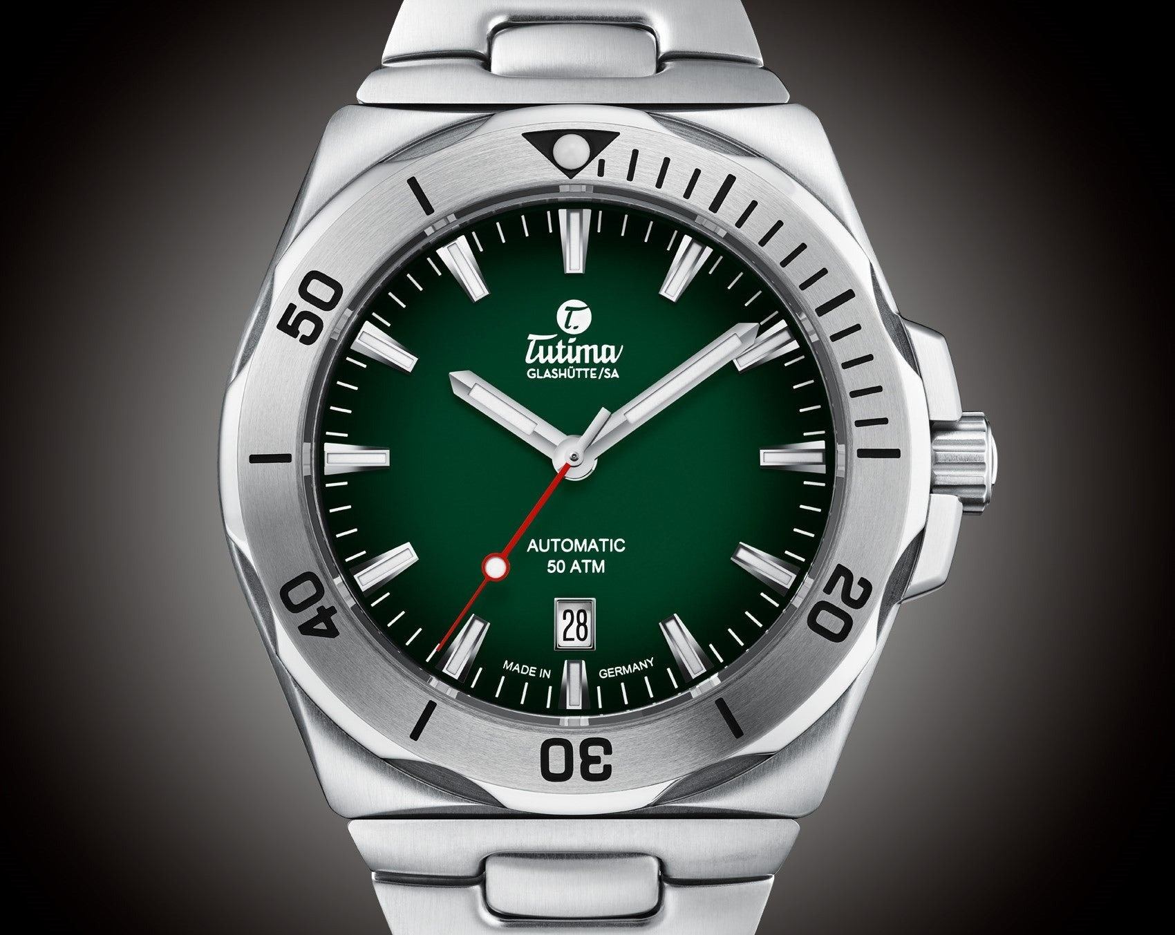 Đánh giá Đồng hồ đeo tay thương hiệu Tutima, dòng sản phẩm M2 Seven Seas S, Ref no: 6155-06, mặt số xanh lá Dégradé, size 44mm, máy tự động, vỏ đồng hồ và dây bằng thép không gỉ, hàng mới 100%