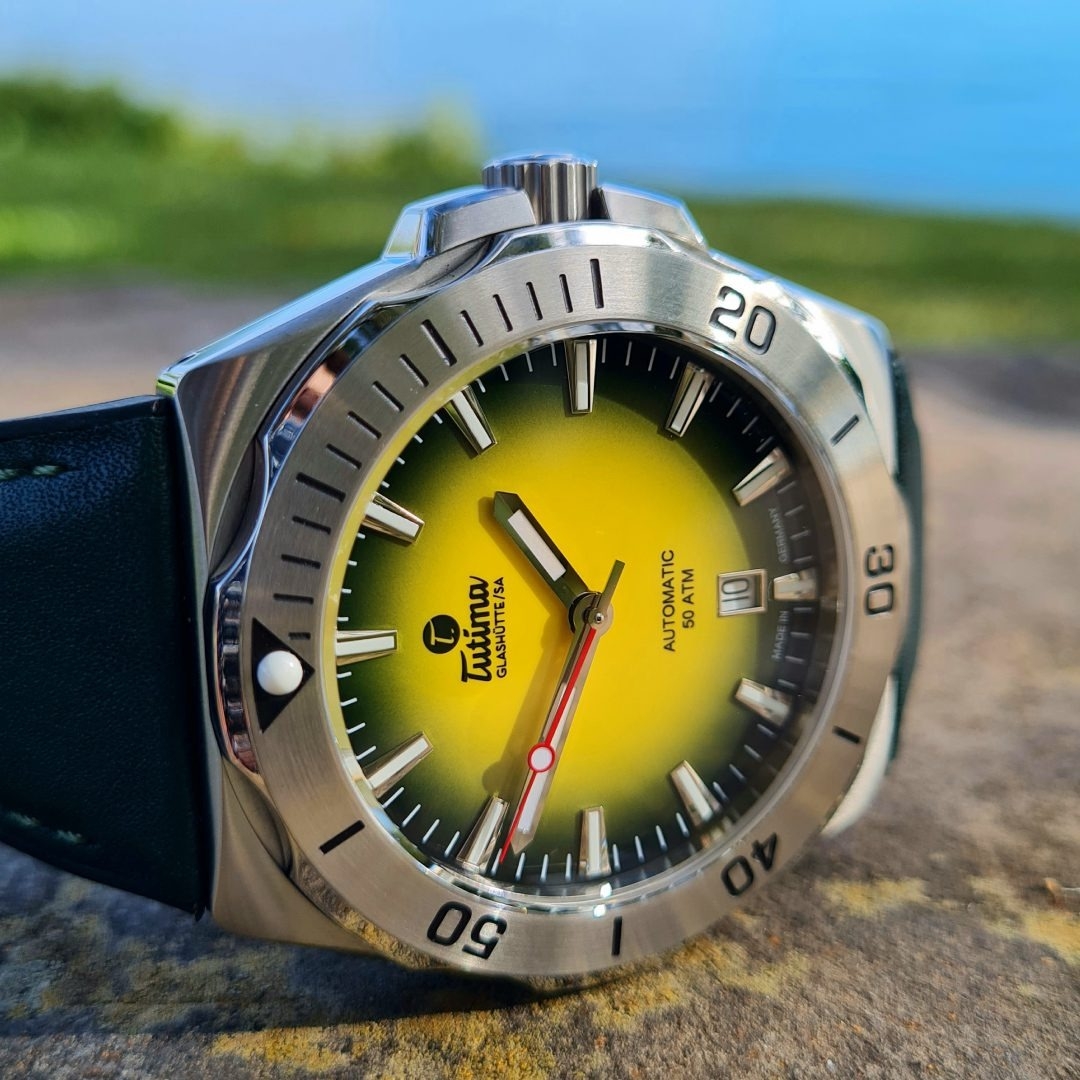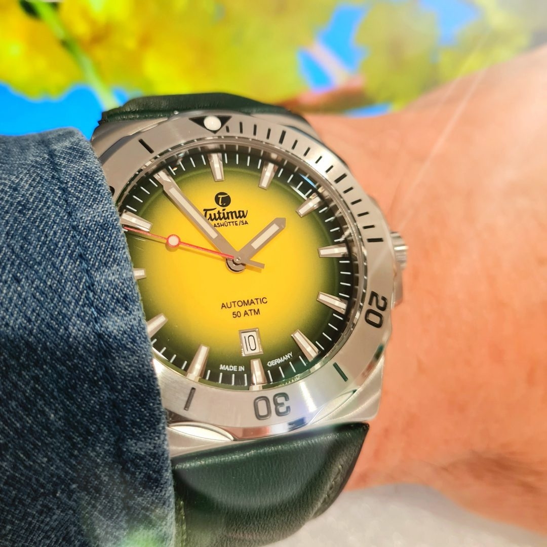 Đánh giá Đồng hồ đeo tay thương hiệu Tutima, dòng sản phẩm M2 Seven Seas S, Ref no: 6155-09, mặt số vàng Dégradé, size 44mm, máy tự động, vỏ đồng hồ thép không gỉ, dây cao su phủ da, hàng mới 100%