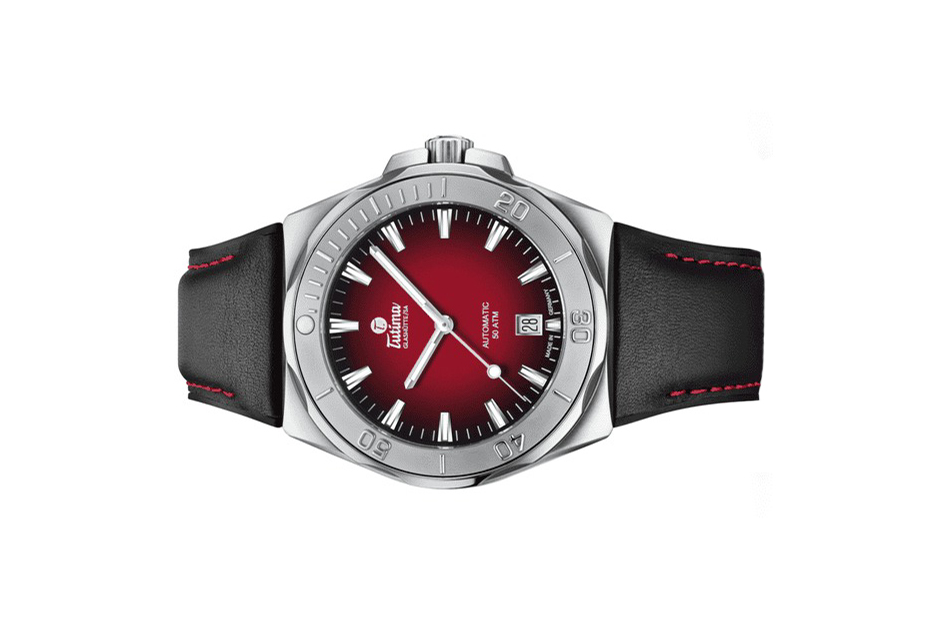 Giới thiệu Đồng hồ đeo tay thương hiệu Tutima, dòng sản phẩm M2 Seven Seas S, Ref no: 6156-07, mặt số đỏ Dégradé, size 40mm, máy tự động, vỏ đồng hồ thép không gỉ, dây cao su phủ da, hàng mới 100%