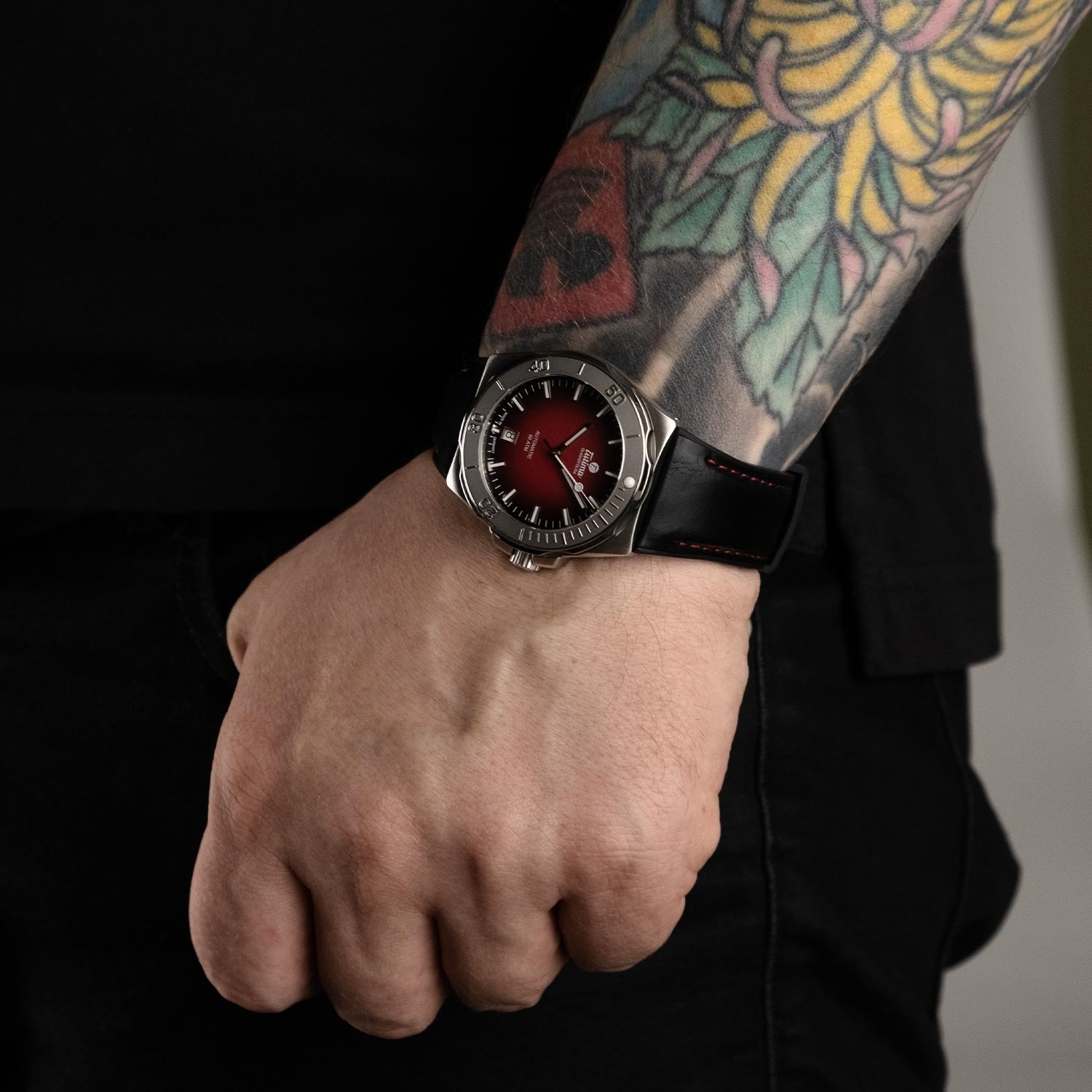 Thuộc dòng M2 Seven Seas S, mẫu Tutima M2 Seven Seas S (Ref: 6156-07) ngay lập tức thu hút nhờ mặt số đỏ Dégradé (40mm). Sắc đỏ này không chỉ rực rỡ, nổi bật, mà còn khéo léo chuyển tông (Dégradé) tinh tế, giúp chiếc đồng hồ toát lên vẻ cá tính nhưng vẫn giữ được sự thanh lịch. Kích thước 40mm được coi là “vừa đủ” – không quá lớn để gây cảm giác cồng kềnh, nhưng vẫn đủ nổi bật để “tỏa sáng” trên cổ tay, tạo sự cân đối cần thiết. Dù bạn đang diện trang phục công sở, dạo phố cuối tuần, hay tham gia các hoạt động thường ngày, chiếc đồng hồ này vẫn “ăn nhập” một cách hoàn hảo, thể hiện phong cách cá nhân một cách tinh tế.