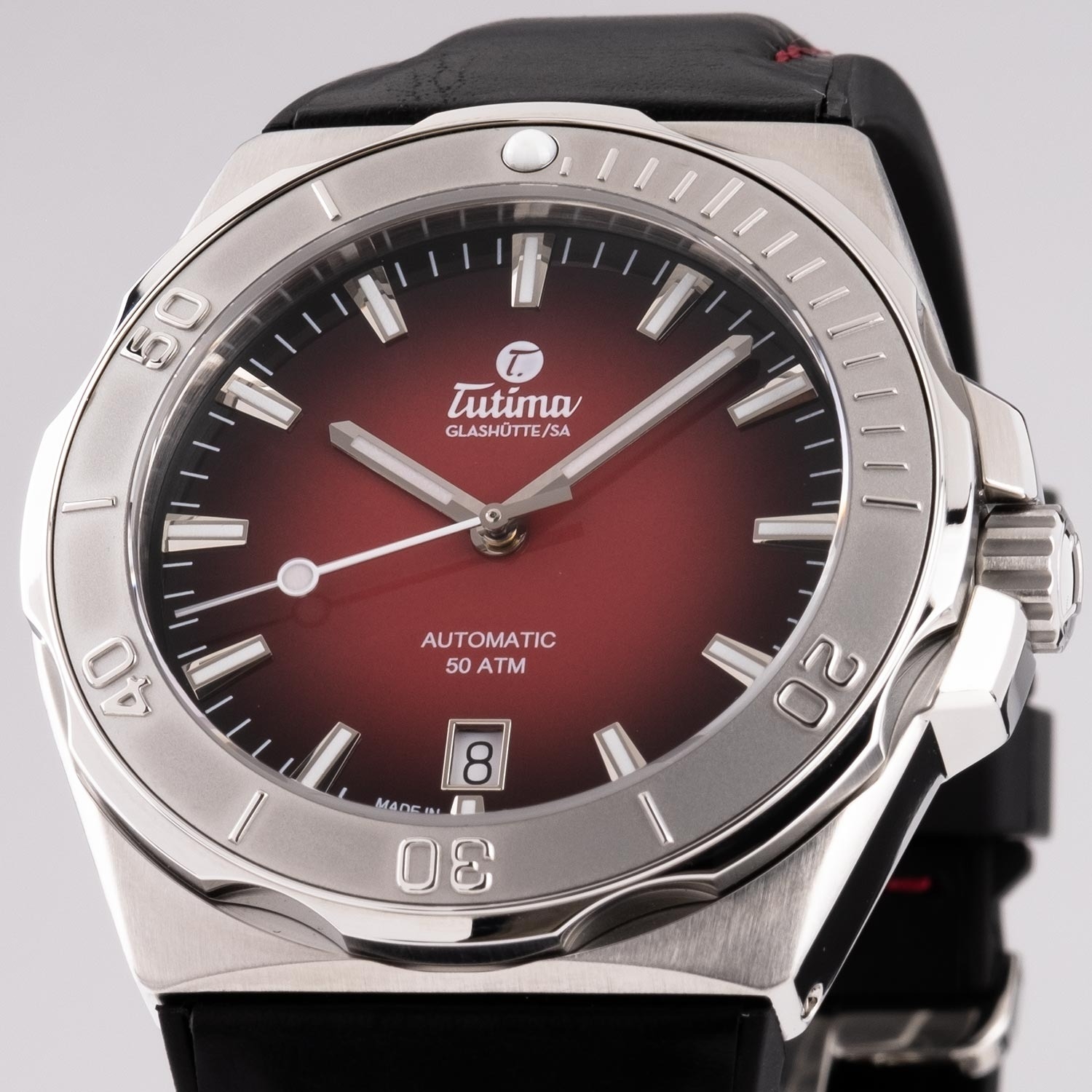 Đánh giá Đồng hồ đeo tay thương hiệu Tutima, dòng sản phẩm M2 Seven Seas S, Ref no: 6156-07, mặt số đỏ Dégradé, size 40mm, máy tự động, vỏ đồng hồ thép không gỉ, dây cao su phủ da, hàng mới 100%