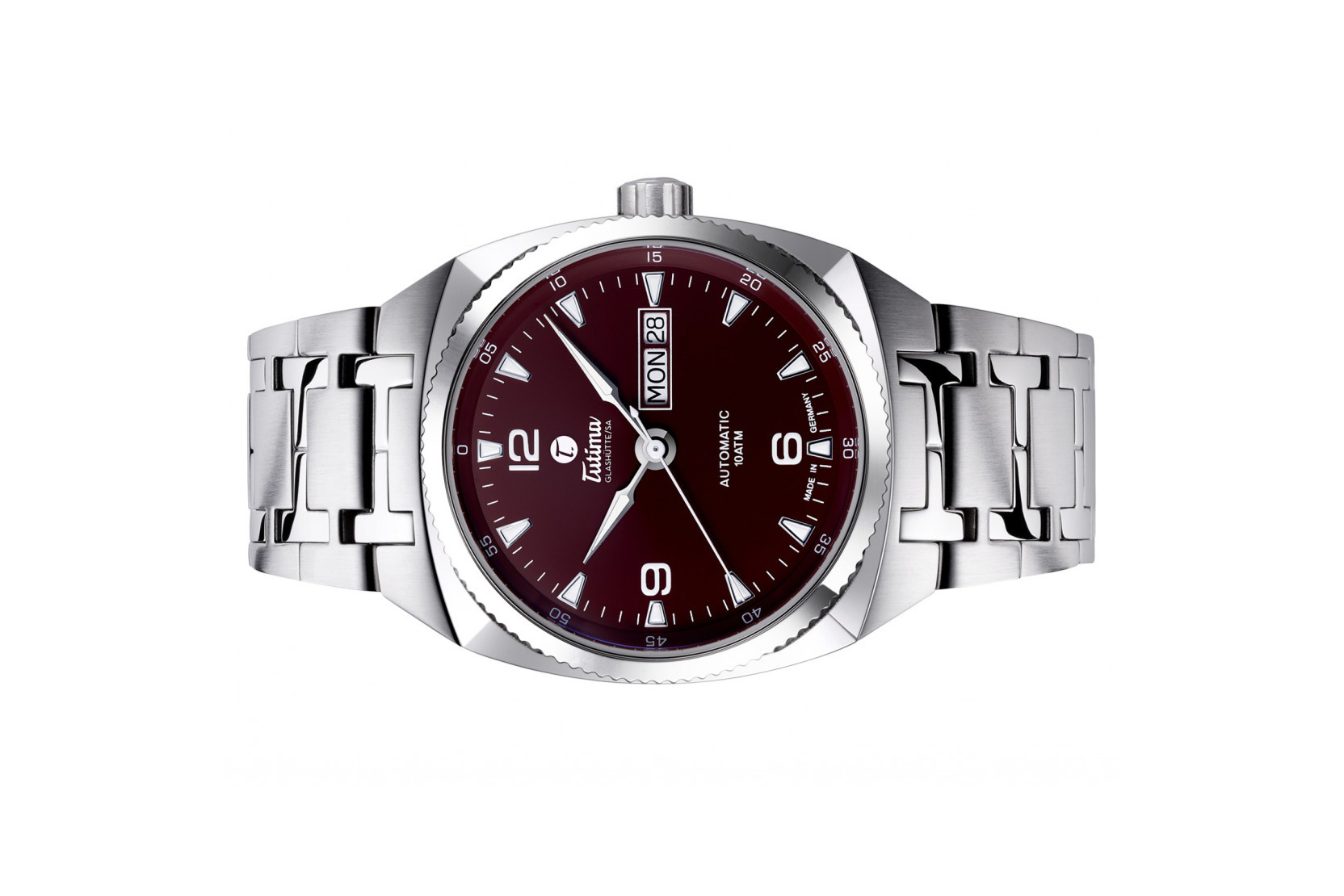 Giới thiệu Đồng hồ đeo tay thương hiệu Tutima, dòng sản phẩm Saxon One M, Ref no: 6121-01, mặt số nâu hạt dẻ, size 40mm, máy tự động, vỏ và dây đồng hồ bằng thép không gỉ, hàng mới 100%