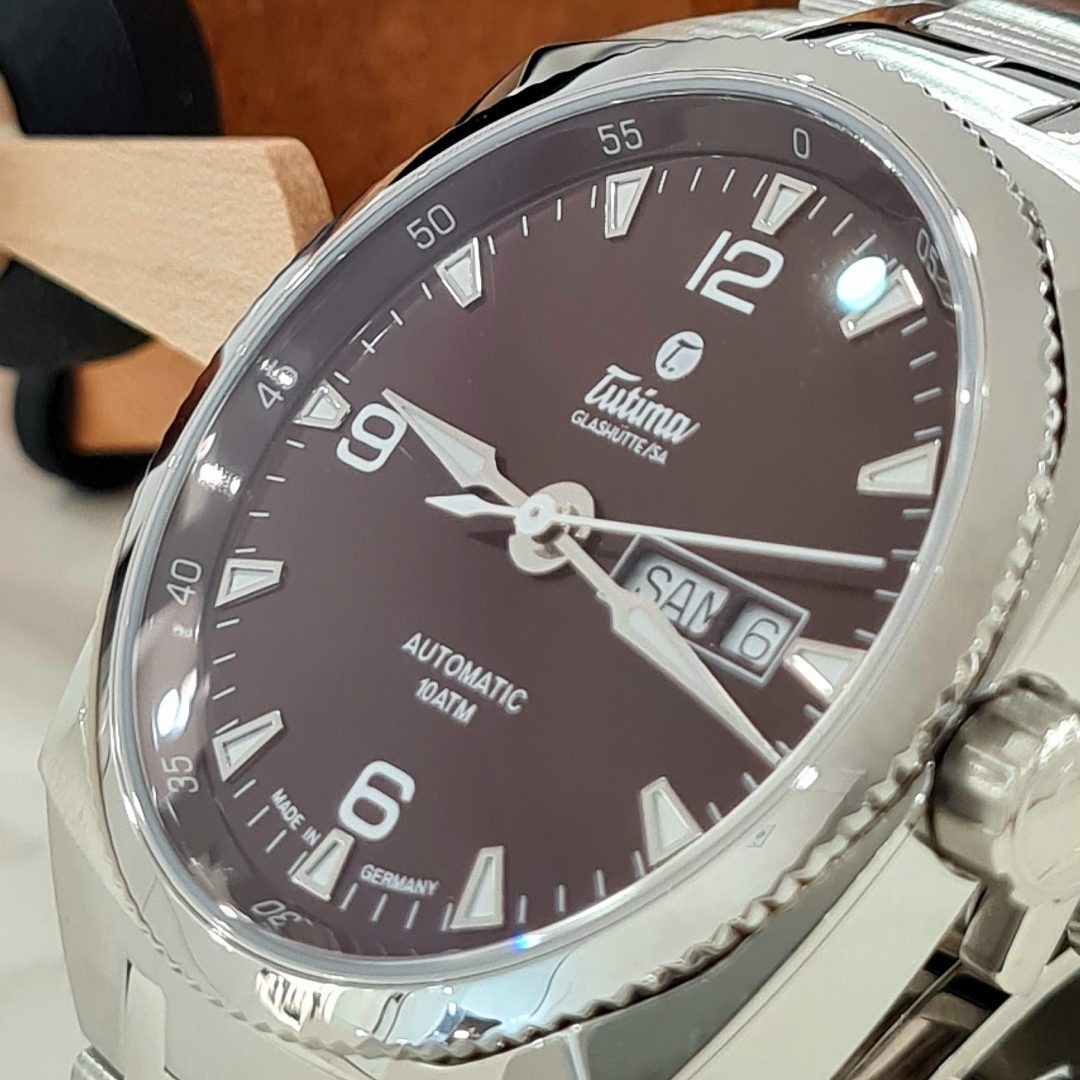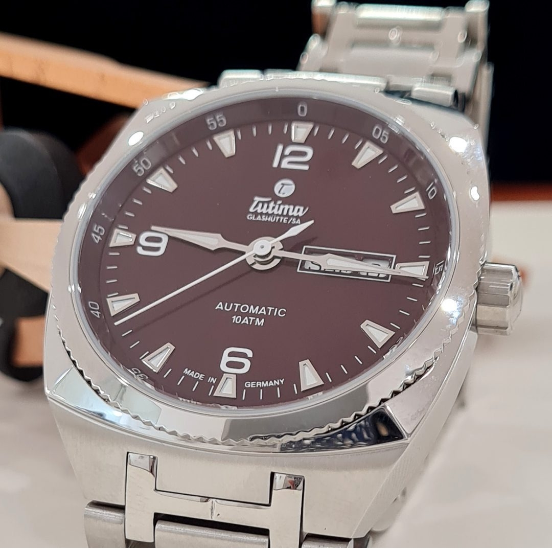 Đánh giá Đồng hồ đeo tay thương hiệu Tutima, dòng sản phẩm Saxon One M, Ref no: 6121-01, mặt số nâu hạt dẻ, size 40mm, máy tự động, vỏ và dây đồng hồ bằng thép không gỉ, hàng mới 100%
