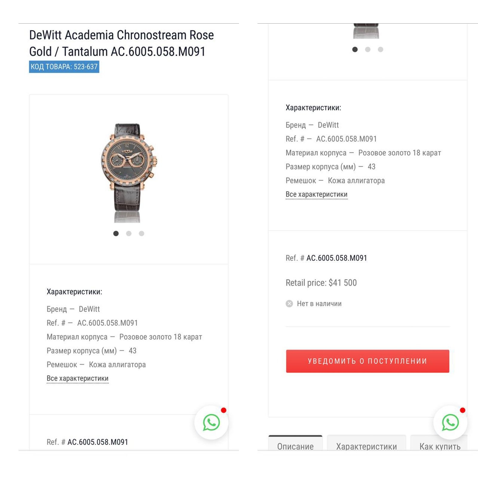 | Xuất xứ | DeWitt - Thụy Sĩ |