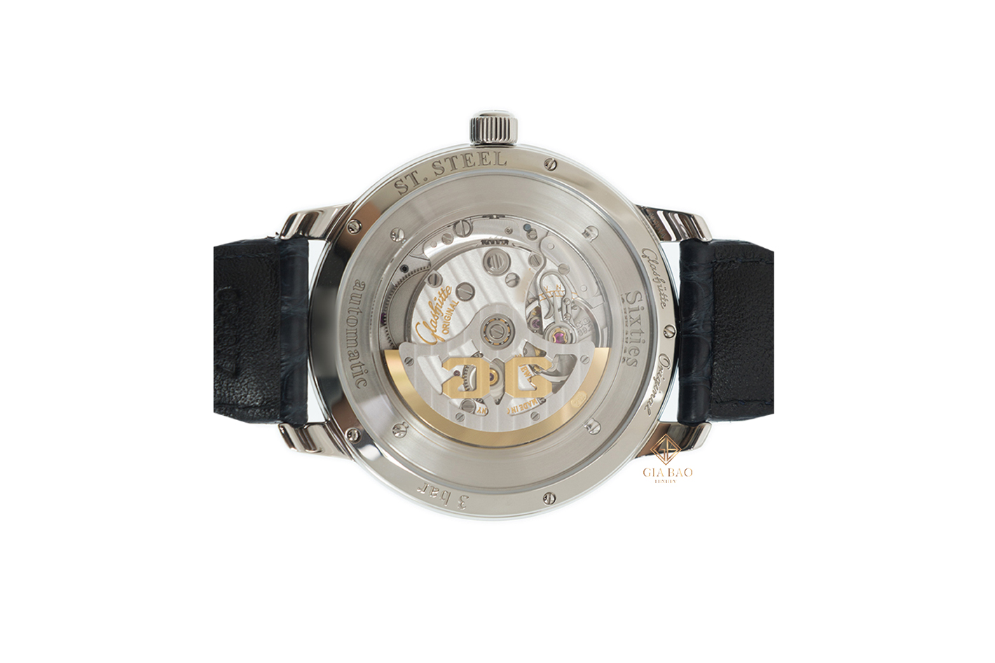 Cung cấp cho mẫu đồng hồ Sixties Panorama 2-39-47-06-02-04 là bộ máy 39-47 có thể quan sát tại mặt đáy đồng hồ. Rotor hai màu là chi tiết dễ nhận diện khi quay đồng hồ lại. Với rotor có hai chữ G đối lưng bằng vàng 21 cara hiện tại, bộ máy 39-47 có thể đảm bảo năng lượng cho chiếc đồng hồ vận hành trong khoảng 40 giờ.