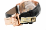 Cuối cùng, hoàn thiện nên vẻ đẹp của mẫu đồng hồ này là dây đeo được làm từ da cá sấu màu đen, với các đường kim mũi chỉ được khâu tay một cách thủ công vô cùng cẩn thận. Móc khóa cài cũng được làm từ vàng hồng, có khắc thêm logo tên thương hiệu Glashutte Original – một minh chứng cho chất lượng tuyệt vời và sự cẩn thận, chau chuốt trong từng chi tiết nhỏ của thương hiệu.