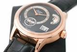 Góc bên tay trái của chiếc đồng hồ là một vòng tròn đồng tâm hiển thị chức năng giờ, phút. Các cọc số và kim chỉ giờ được chế tác từ vàng hồng sáng bóng. Một vòng tròn nhỏ bên dưới được thiết kế đối xứng hiển thị chức năng xem giây. Góc 2h, một cửa sổ bán nguyệt nhỏ chính là chức năng hiển thị chu kỳ mặt trăng. Hoàn thiện thêm tính năng của chiếc đồng hồ là một cửa sổ ngày nằm ở vị trí 4h.