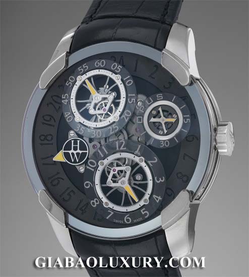 Có ba mặt số phụ với những chữ số được in trên mặt kính Sapphire, ba mặt số phụ đó lại được đặt trên một trục lớn, xoay liên tục với vận tốc 1 vòng/ ngày. Ba mặt số phụ có tác dụng hiển thị giờ, phút, giây và luôn được giữ theo một chiều cố định mặc dù xoay liên tục quanh mặt số chính. Cây kim màu vàng có nhiệm vụ hiển thị thời gian ở múi giờ thứ hai, theo khung 24 giờ.