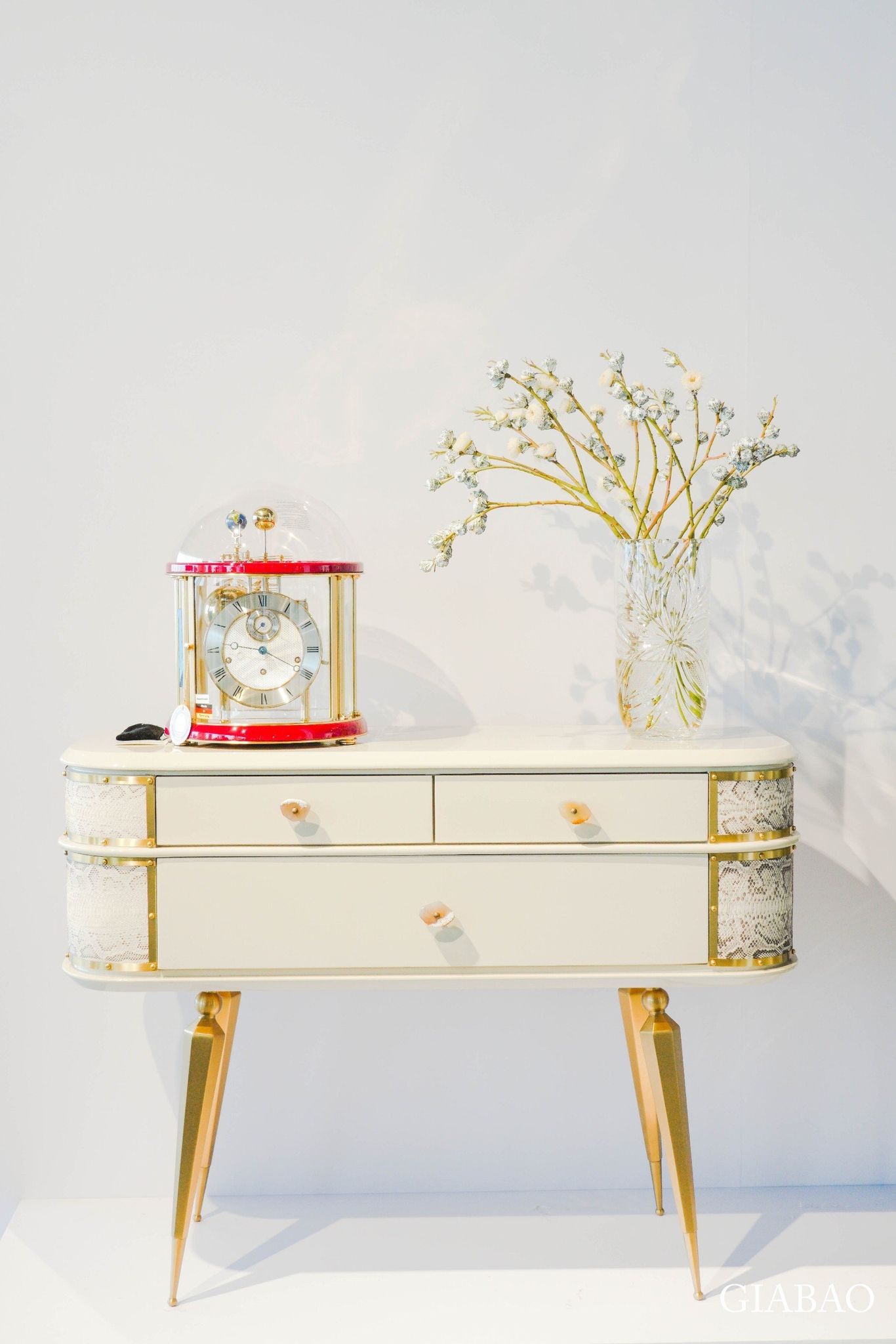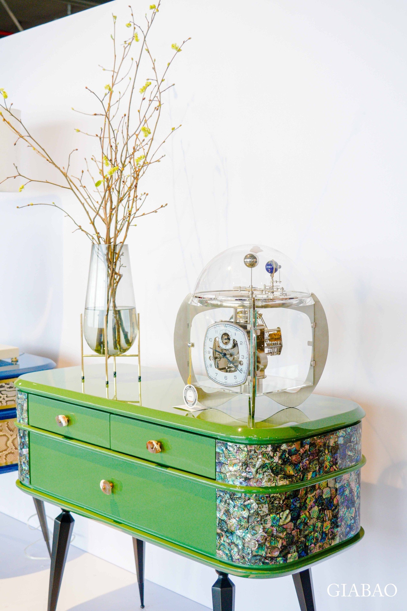 Góp mặt trong sự kiện này, Gia Bảo mang đến những chiếc đồng hồ Hermle - được mệnh danh là viên ngọc quý của nước Đức. Đại diện cho vẻ đẹp cơ khí đỉnh cao, từng chiếc đồng hồ Hermle thể hiện sự linh hoạt, có thể phù hợp với nhiều không gian trống khác nhau. Hoà cùng với nhịp điệu của chương trình, mỗi chiếc đồng hồ đều đóng vai trò là một lớp lang quan trọng để tạo nên một tổng thể kiến trúc hoàn chỉnh.