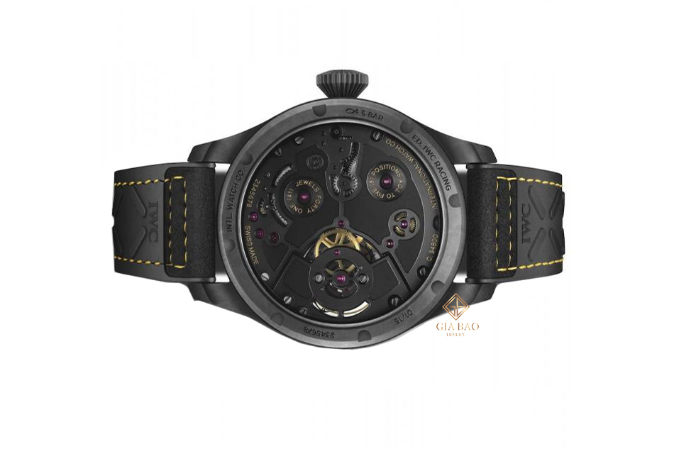 Tương tự với mặt số, sợi dây đeo của chiếc IWC Big Pilot’s Tourbillon IW590501 cũng được thiết kế với hai tông màu đen chủ đạo, được làm nổi bật hơn nhờ những đường chỉ màu vàng. Bên dưới lớp da bê là một lớp cao su giúp chống thấm nước, đảm bảo sự thoải mái cho người sử dụng.