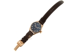 Bù lại có đường kính lớn là càng nối dây ngắn, được thiết kế cong giúp bộ dây dễ dàng ôm lấy cổ tay hơn. Với chiếc IWC Big Pilot's Watches “Antoine de Saint Exupéry” IW502706, IWC sử dụng dây da bê mềm mại mà chắc chắn, với tông màu nâu đỏ nổi bật. Bộ dây được cố định bởi khóa gập bằng vàng khối, trên đó có khắc tên thương hiệu.