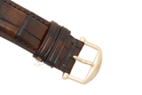 Càng nối dây được thiết kế với kích thước ngắn, uốn theo cổ tay giúp sợi dây da cá sấu ôm lấy tay người dùng dễ dàng hơn. Bộ dây này được IWC đặt hàng từ thương hiệu Santoni nổi tiếng, có xuất xứ từ Ý. Phần da được sử dụng cũng là phần đắt tiền nhất, với những đường vân rõ ràng, tự nhiên.