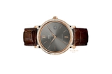 Hệ thống cọc chỉ giờ của chiếc đồng hồ được đánh bóng tinh xảo, với phần lớn thiết kế dạng baton đơn giản mà tinh tế. Riêng có hai cọc số góc 6 giờ và 12 giờ được làm nổi bật hơn, với dạng chữ số La Mã. Tất cả các chi tiết vàng khối này tạo nên độ tương phản ấn tượng với mặt số xám đen, được hoàn thiện chải tia đẹp mắt.