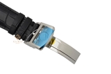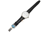 Đi kèm với chiếc IWC Portugieser Annual Calendar IW503501 là bộ dây da cá sấu màu đen, với kích thước đầu dây 22mm. Phần chốt dây được làm cong rất tinh tế, ôm lấy phần vỏ đồng hồ và không tạo ra khoảng trống nào. Bộ dây này được cố định bởi khóa gập, trên đó có khắc tên thương hiệu IWC.