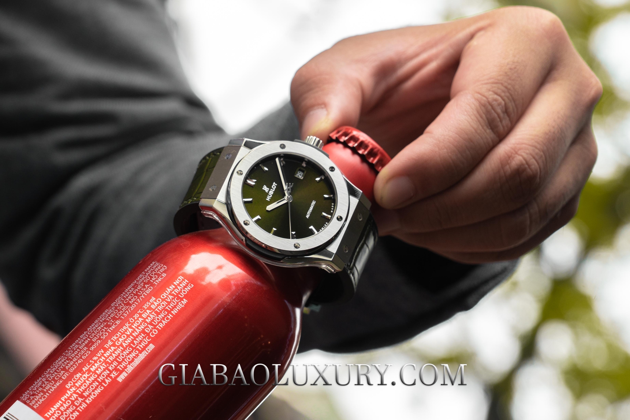 Điều quyết định việc lên tay thoải mái của Classic Fusion Chronograph 42mm nằm ở bộ vỏ có trong chất liệu titanium cùng dây đeo cao su kiểu cách của hãng. Từ trước tới nay, vỏ đồng hồ Hublot luôn thực khác biệt, cá tính và nhìn chúng có phần hầm hố hơn nhiều thiết kế đồng hồ Thuỵ Sĩ khác. Nhưng khi sử dụng chất liệu nhẹ kim loại làm vỏ kết hợp cùng cao su từ dây đeo, đồng hồ Hublot từ bộ sưu tập Big Bang cho tới cỗ máy Classic Fusion như hiện tại đều cho cảm giác thoải mái khi lên tay.