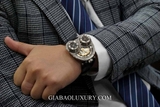 Về cơ bản, hai phiên bản Sidewinder và Starcruiser không có quá nhiều khác biệt, chỉ khác nhau duy nhất ở hướng đeo trên cổ tay. Starcruiser có núm chỉnh giờ đặt vuông góc với cổ tay, còn Sidewinder thì lại có núm chỉnh giờ song song với cổ tay. Và chiếc đồng hồ xuất hiện trong phiên đấu giá Important Modern & Vintage Timepieces là một thiết kế phiên bản Starcruiser đặc biệt.