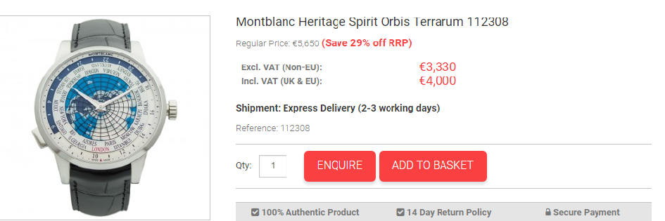 Là một thương hiệu khá mới mẻ nhưng đã tạo nên dấu ấn sâu đậm trên thị trường đồng hồ Việt Nam, Montblanc có thế mạnh với những thiết kế độc đáo và được đánh giá rất cao từ giới chuyên môn. Bên cạnh những dòng phụ kiện cá tính và là sự lựa chọn của những người đam mê thời trang, thì đồng hồ cũng là một yếu tố thú vị, xuất phát từ đẳng cấp thời thượng của Montblanc. Chiếc đồng hồ Montblanc Heritage Spirit Orbis Terrarum 112308 là một trong những ví dụ điển hình nhất. Một vẻ ngoài vô cùng kinh điển, thanh lịch nhưng lại thật độc đáo để lại những ấn tượng tốt đẹp trong lòng công chúng yêu đồng hồ cơ học.