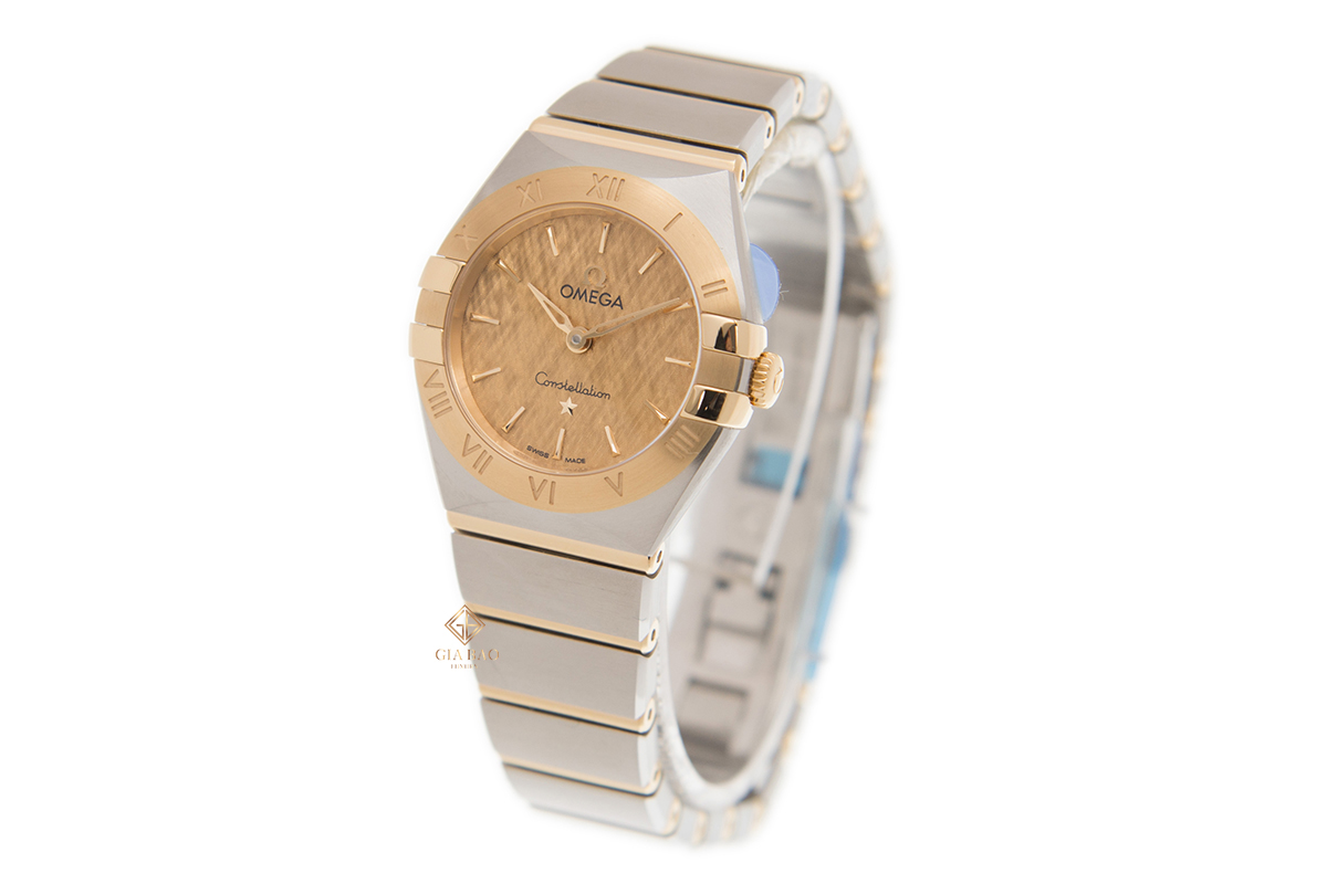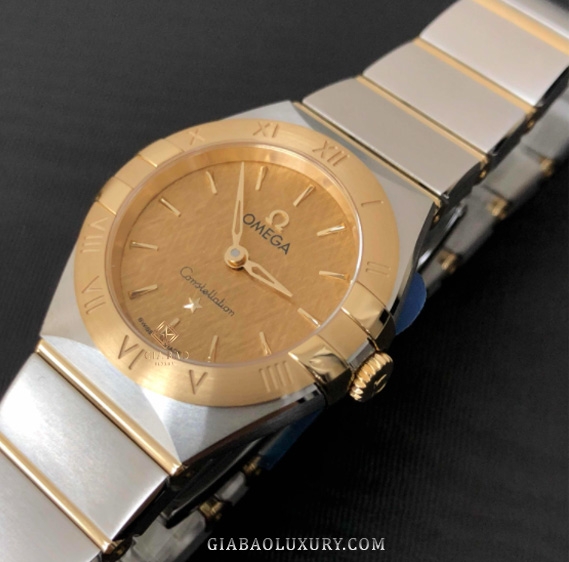 Đồng Hồ Omega Constellation 131.20.25.60.08.001 gây ấn tượng với người mộ điệu từ ánh nhìn đầu tiên bằng mặt số màu vàng và vành bezel làm từ chất liệu vàng vàng 18k được khắc những chữ số La Mã ấn tượng.