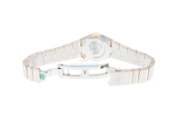 Mặt số khảm trai làm nền cho bộ kim trung tâm, bộ cọc số bằng vàng vàng có đính kim cương nổi bật. Vẻ đẹp kỳ ảo của nền ngọc trai kết hợp với sự sang trọng của vàng vàng đã mang đến cho người sử dụng một sản phẩm có giá trị thẩm mỹ cao trên cổ tay của các quý cô.