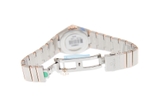 Núm điều chỉnh bên cạnh được thiết kế với những đường xẻ rãnh tạo sự chắc chắn, chống trơn trượt khi các quý cô điều chỉnh thời gian. Dây đeo được thiết kế bằng chất liệu thép không gỉ xen kẽ những đường vạch bằng vàng giữa các mối nối tạo sự tinh tế và ấn tượng hơn khi đeo trên cổ tay các quý cô.