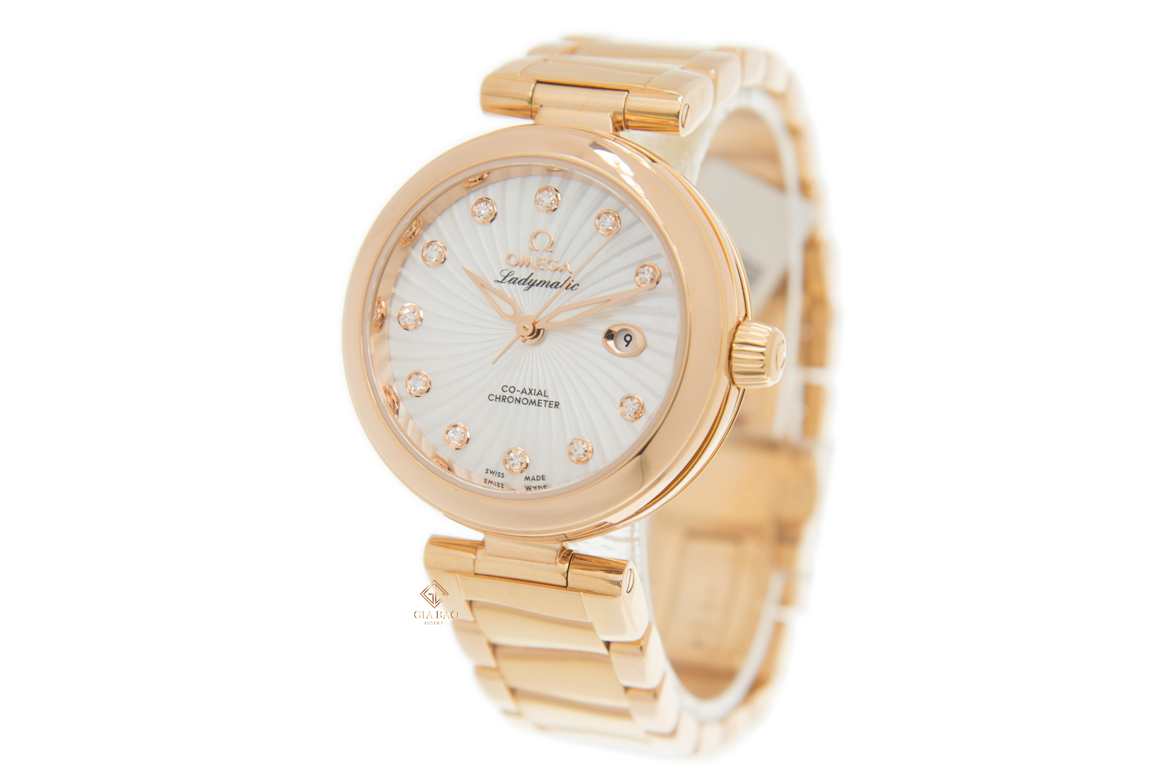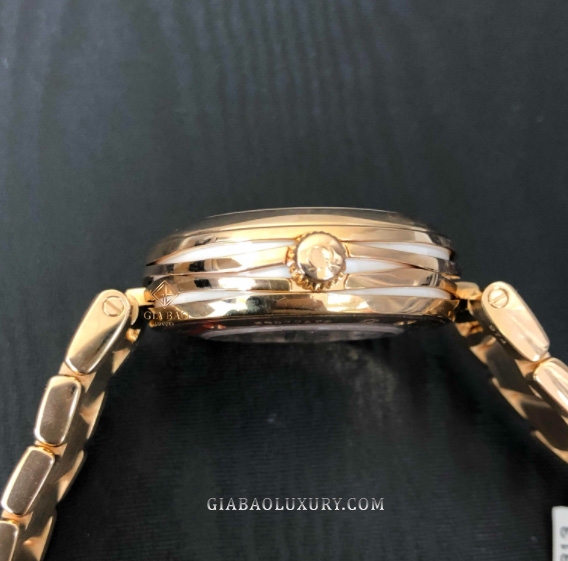 Chắc chắn rồi, bất cứ siêu phẩm đồng hồ nào xuất thân từ đại gia đình Omega, chắc chắn đều được chế tác với dáng vỏ tròn, đường cong mềm mại, Omega De Ville Ladymatic 425.60.34.20.55.001 cũng không phải ngoại lệ. Đặc biệt hơn khi bộ vỏ đồng hồ của sản phẩm này được chế tác hoàn toàn từ vàng đỏ 18K – chất liệu tôn lên sự sang trọng và đầy quý phái của người phụ nữ.