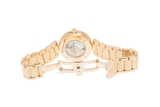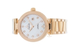 Bên dưới lớp kính sapphire là mặt số đồng hồ màu trắng đầy trang nhã với những họa tiết uốn lượn nhẹ nhàng như thôi miên người nhìn. Đây đồng thời cũng là phần nền hoàn hảo giúp những chiếc kim đồng hồ và cọc số bằng vàng đỏ 18K dễ dàng tỏa sáng để tôn lên vẻ đẹp quý phái trên đôi tay người phụ nữ.