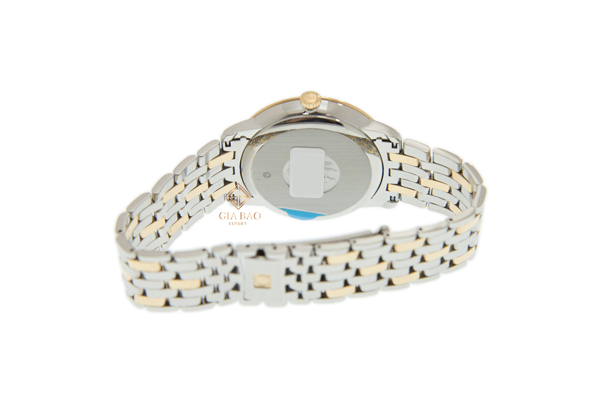 Để tạo thêm điểm nhấn trên mặt số, Omega dùng thêm 6 viên kim cương ở các vị trí 1, 3, 5, 7, 9, 11 giờ. Ở các mốc giờ còn lại, cọc số đường làm bằng vàng khối và tạo hình chữ số La Mã. Ô cửa sổ ngày hữu dụng được đặt ở góc 3 giờ, với nền màu trắng.