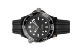 Omega Seamaster 210.92.44.20.01.001 sử dụng dây đeo cao su thời trang, tích hợp cùng khóa Ceramic được đánh bóng một cách tỉ mỉ và tinh tế. Mặt kính bằng Sapphire có khả năng chống xước cao, bảo vệ tốt cho bộ kim trung tâm và các cọc chỉ giờ bên trong.