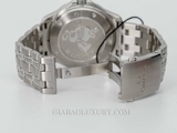 Vành Bezel một chiều của đồng hồ được làm từ gốm Ceramic xanh với chữ số bạc. Đồng hồ có kích thước là 41mm và mức chống thấm nước là 300m.