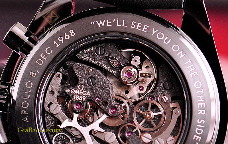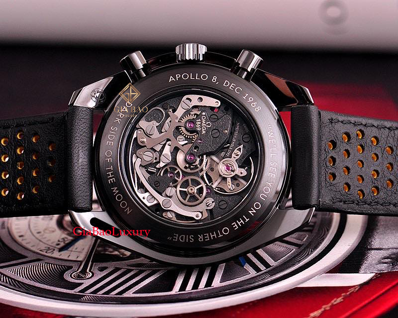 Phần đáy được làm bằng kính Sapphire, nhìn vào bên trong ta có thể thấy được bộ máy Calibre 1869 (đây là bộ máy nâng cấp của phiên bản Calibre 1861 nổi tiếng của Omega), biên độ giao động 21.600 vph và có mức dự trữ năng lượng xấp xỉ 48 giờ. Dây đeo được làm bằng da màu đen kết hợp với lớp dây cao su bên trong và những đường chỉ màu vàng tạo nên điểm nhấn cho chiếc đồng hồ.