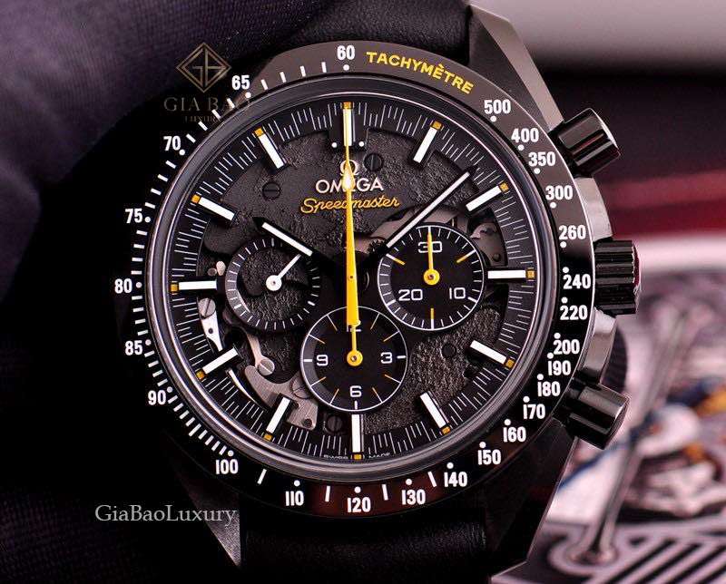 Nằm bên trong lớp vỏ gốm màu đen size 44.25mm với phần xung quanh viền lớp vỏ được chải xước và đánh bóng. Vành bezel được khắc màu trắng các chỉ số của thang đo Tachymeter. Bên trong mặt số được thiết kế Skeleton lộ cơ rất độc đáo, kết hợp với các chức năng Chronograph tạo nên sự cân bằng trên mặt số, thang đo 30 phút nằm ở góc 3h đối diện sang góc 9h là ô báo giây được tách riêng với các kim chỉ giờ phút, góc 6h là một thang đo 12h.