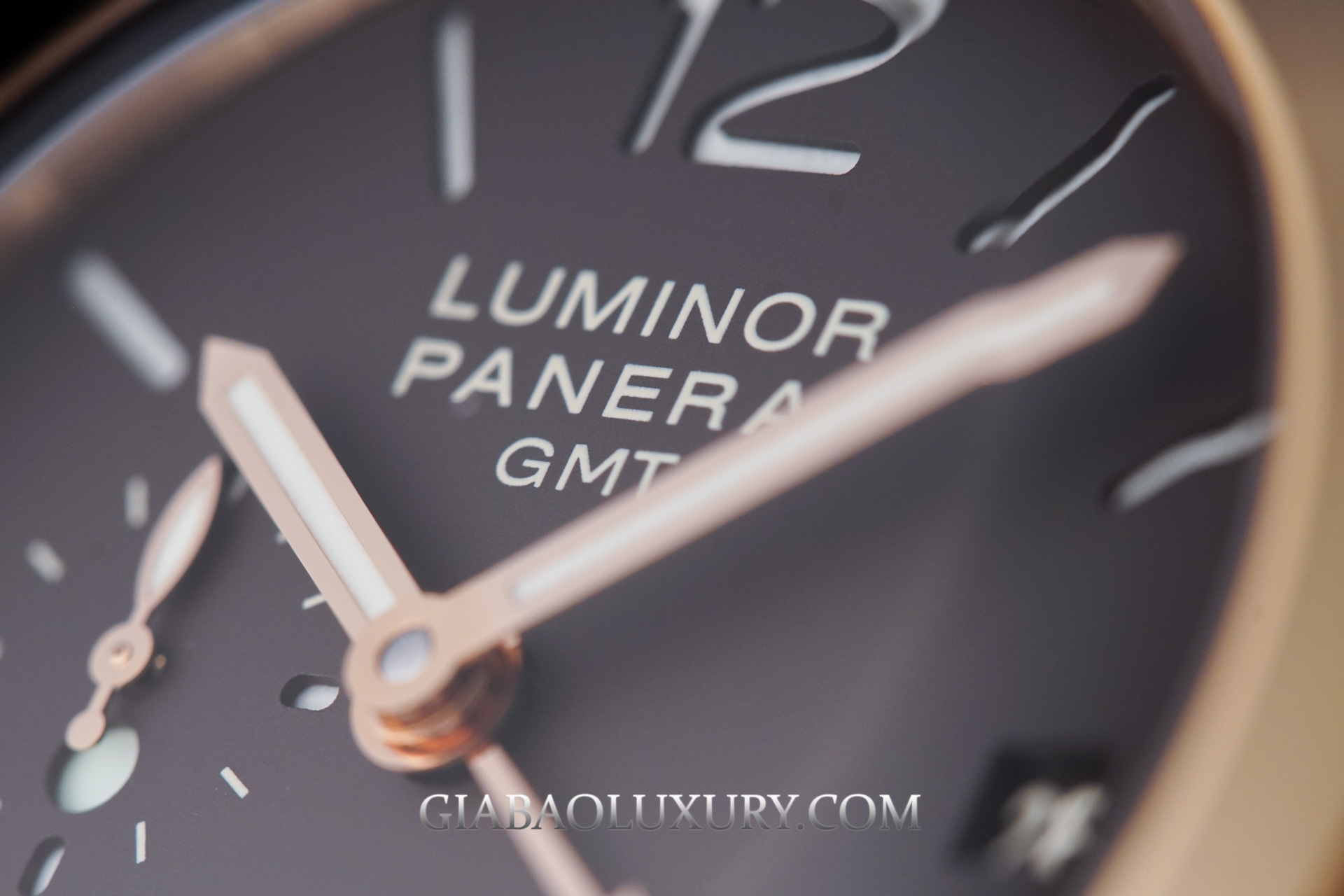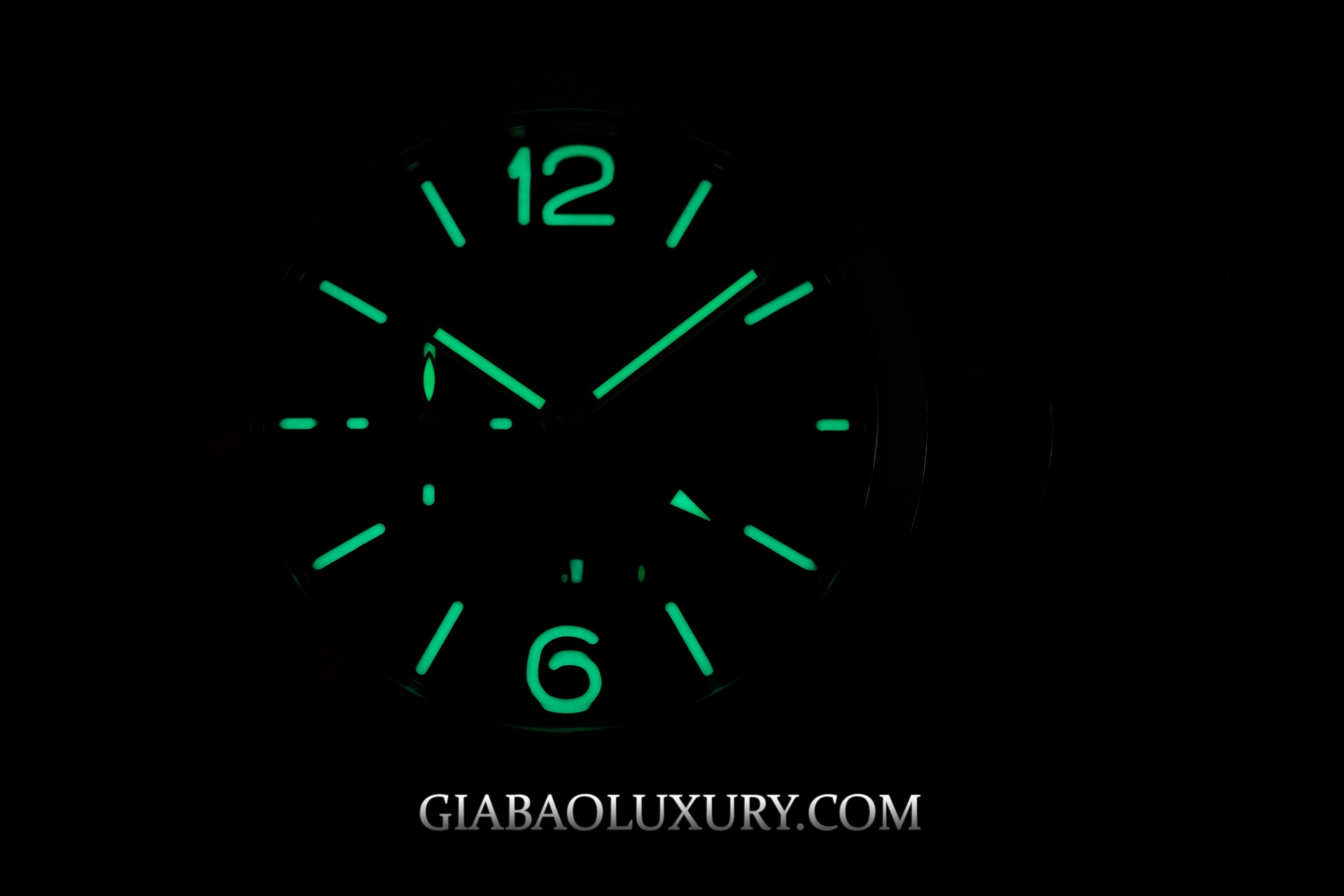 Dưới lớp kính sapphire cong là mặt số của chiếc đồng hồ, kính cong này không những tăng thêm độ khủng về kích cỡ mà còn giúp cho khả năng quan sát giờ ở các góc nghiêng được tốt hơn. Thiết kế mặt số của Panerai đã trở thành huyền thoại của sự tối giản mà không hề đơn điệu. Mặt số có thiết kế tối giản hết sức với các cọc số được khoét và được phủ một lớp dạ quang siêu sáng. Ô cửa sổ ngày ở góc 3 giờ, giờ GMT ở góc 9h và kèm theo đó là chỉ báo giờ sáng tối. Ở khu vực góc 6h là chức năng chỉ báo năng lượng cót khủng lên đến 8 ngày.