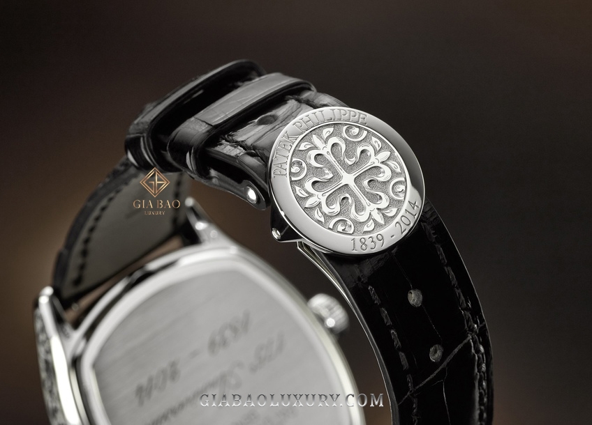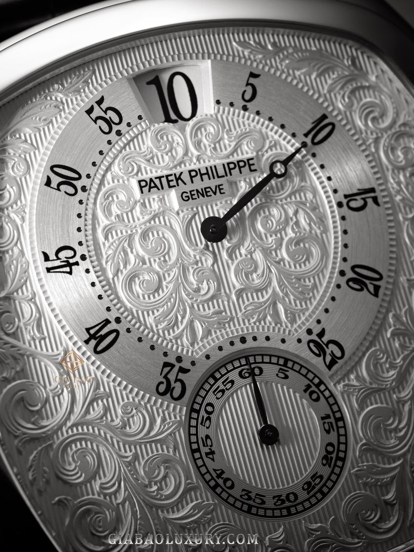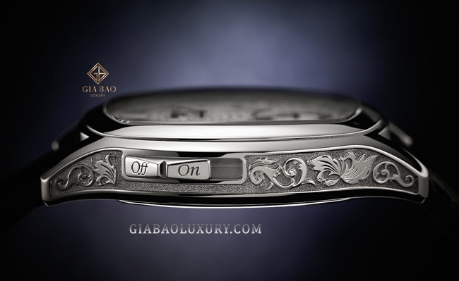 Ấn tượng hơn nữa là những hoa văn in nổi được các nghệ nhân chạm khắc tinh xảo đến từng chi tiết trên mặt đồng hồ. Bao lấy mặt số kết tinh đầy giá trị tinh hoa của cả thời đại ấy chính là vành Bezel bạch kim tông màu bạc gắn liền với càng nối được đánh bóng kỹ lưỡng. Tất cả các chi tiết này khi kết hợp lại với nhau đã tạo nên một giao diện thống nhất, hài hòa về cả bố cục lẫn tính thẩm mỹ.
