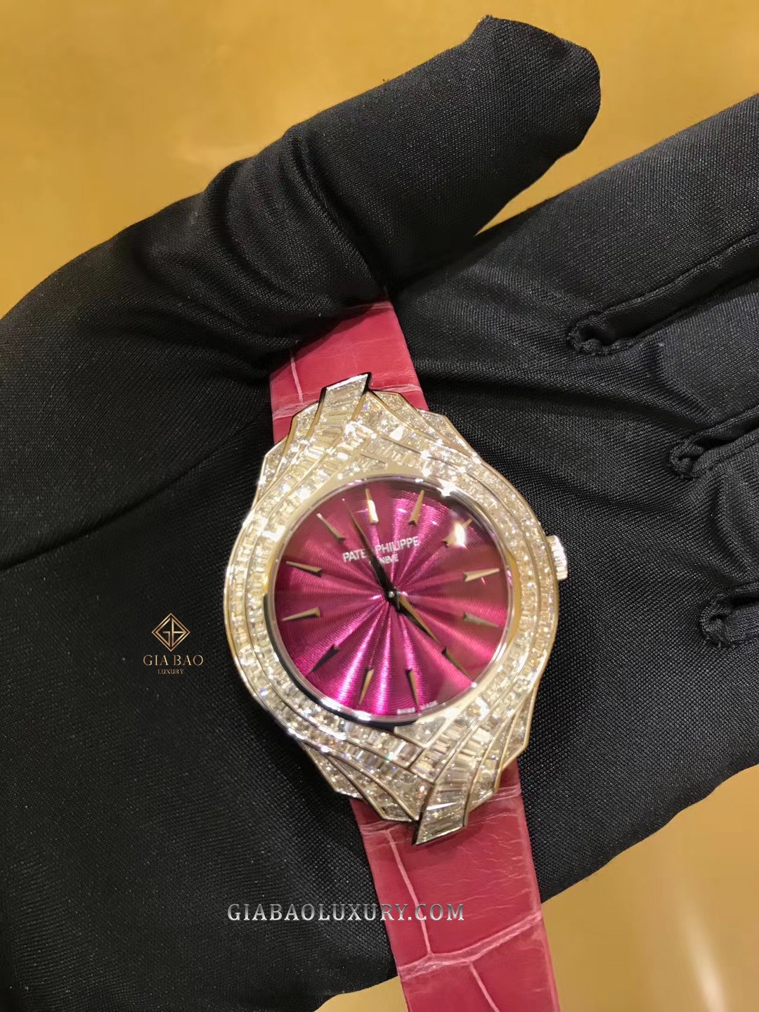 Mẫu đồng hồ Patek Philippe Calatrava 4895G-001 là một biến tấu ấn tượng trong bộ sưu tập Calatrava. Thiết kế đồng hồ nữ này thật sự khiến người khác phải chú ý vì bộ vỏ nạm kim cương siêu đặc biệt của mình.