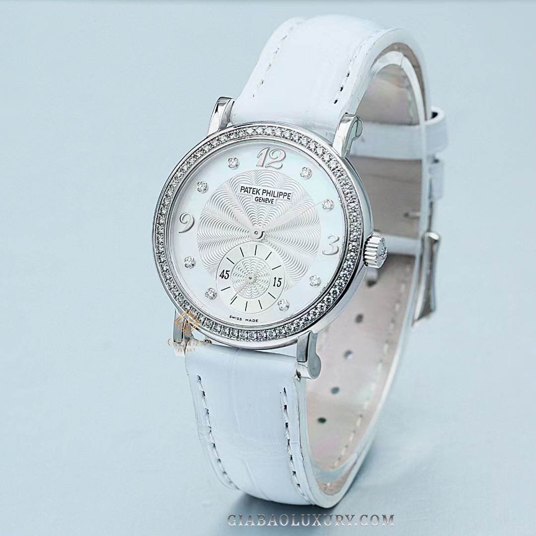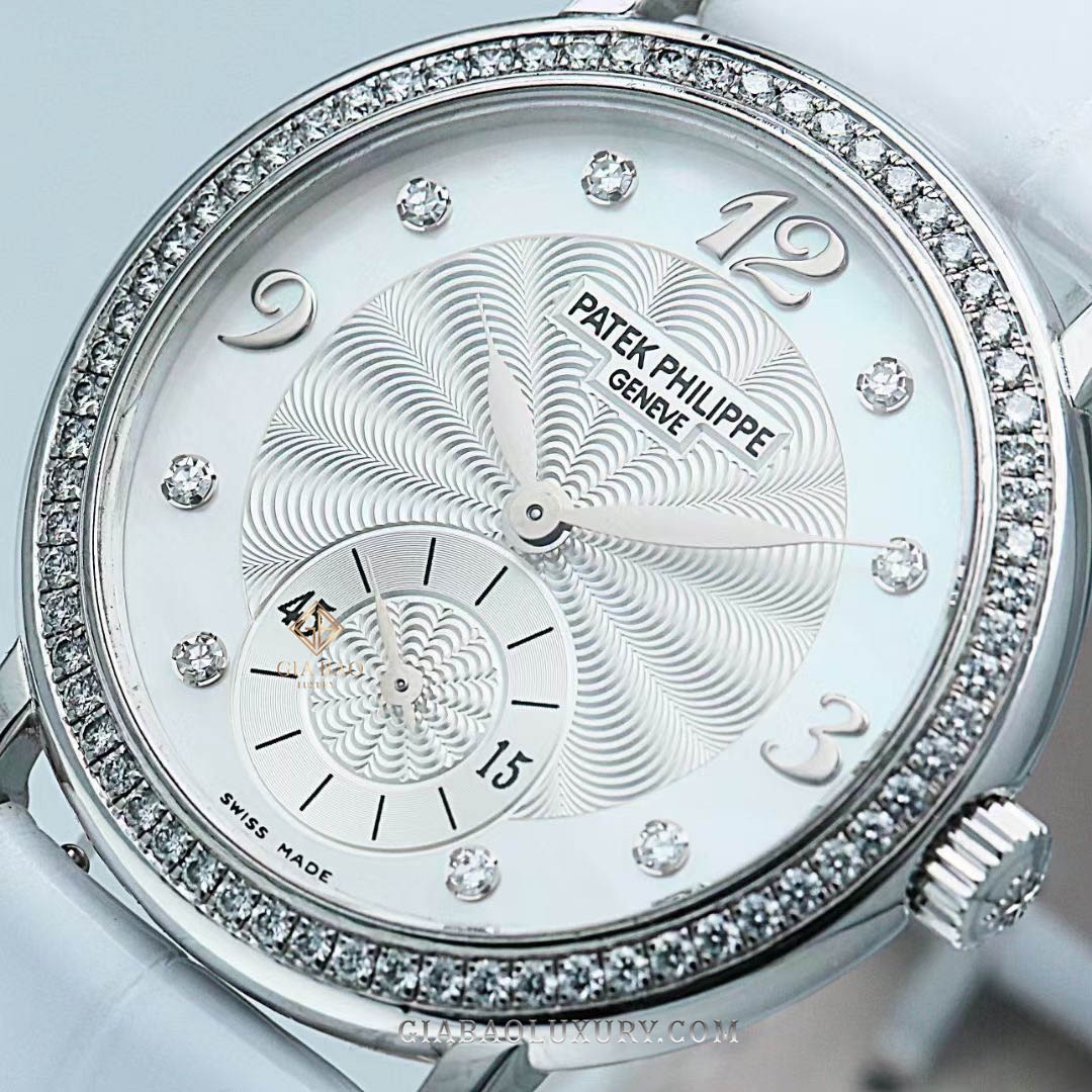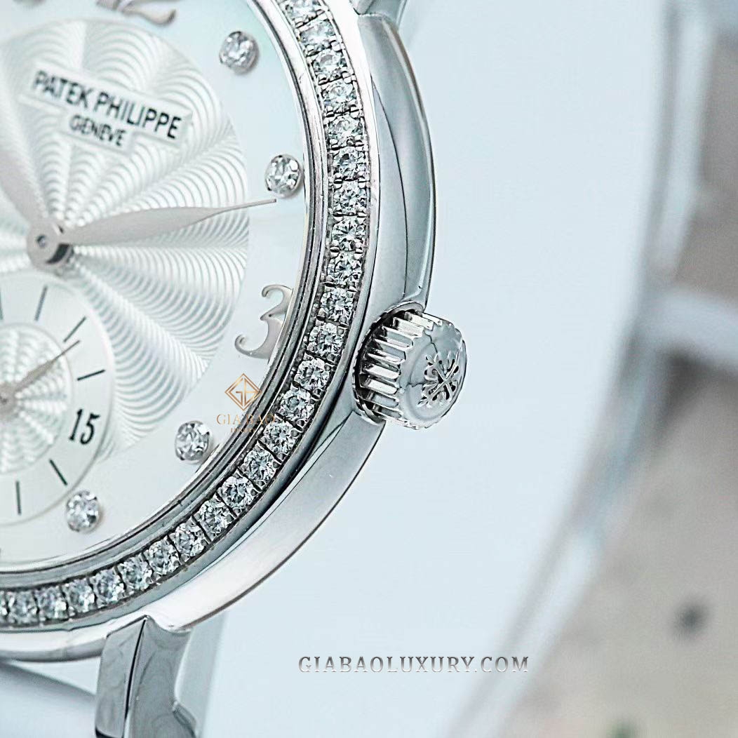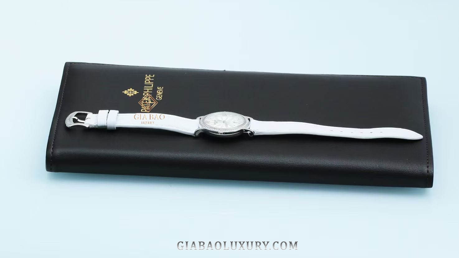 Kế đến, phần vành bezel cũng là một điểm cộng của mẫu đồng hồ này. Để hoàn thiện vành bezel, những người thợ chế tác đồng hồ nhà Patek Philippe đã kết hợp 2 chất liệu vàng trắng 18K và kim cương - 2 chất liệu quý hiếm khiến bộ vỏ khung tựa như bật sáng, ánh lên vẻ đẹp sắc sảo và đầy mê hoặc.