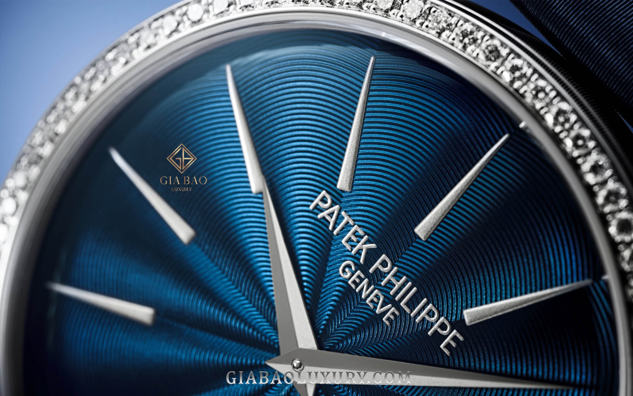 Mặt số của chiếc Patek Philippe Calatrava 4997/200G-001 được xử lý rất tinh xảo với những đường vân Guilloche dạng sóng. Phương pháp này tạo nên khả năng bắt sáng hoàn hảo cho mặt số, khiến bộ phận này như sáng bừng lên mỗi khi ánh sáng chiếu vào. Trên nền mặt số màu lam được hoàn thiện bởi vân Guilloche, ta có hệ thống cọc số bằng vàng trắng, đi kèm cây kim Dauphine sắc sảo.