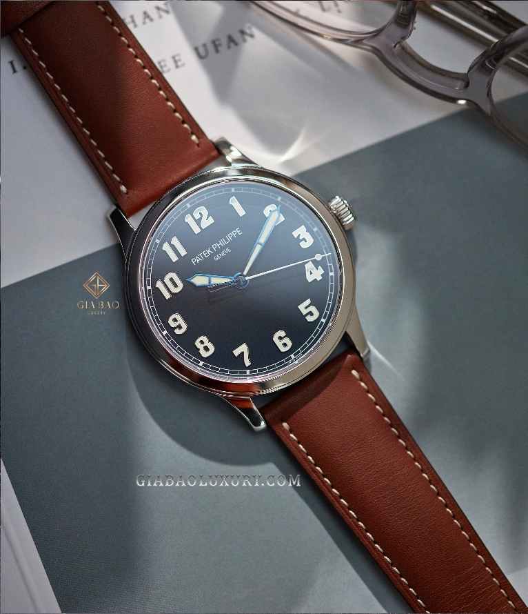 Về kích thước, chiếc đồng hồ này được làm đúng với chuẩn đồng hồ phi công với đường kính 42mm và dày 9mm. Lật qua mặt sau của chiếc Patek Philippe Calatrava 5522A-001, bạn sẽ nhìn thấy mặt kính Sapphire phô diễn những chi tiết máy tuyệt đẹp bên trong. Bộ máy Caliber 324 S phục vụ hoàn hảo khả năng đếm giờ - yếu tố quan trọng nhất làm nên chiếc đồng hồ đeo tay.